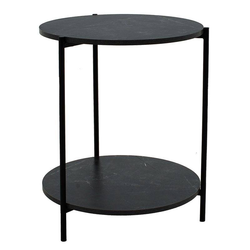 Βοηθητικό τραπέζι Rhythm MDF μαύρο μαρμάρου-μαύρο Φ48x60cm Βοηθητικό τραπέζι Rhythm MDF μαύρο μαρμάρου-μαύρο Φ48x60cmΣτρόγγυλο βοηθητικό τραπεζάκι σαλονιού με μοντέρνο design και με την δυνατότητα προβολής και αποθήκευσης των αγαπημένων σας διακοσμητικών και μικροαντικειμένων. Ένα έπιπλο υψηλής ποιότητας κατασκευής και λειτουργικότητας, απαραίτητο για το σπίτι ή το γραφείο. Τεχνικά χαρακτηριστικά: Κατασκευή από μοριοσανίδα με επένδυση μελαμίνης και MDF υψηλής ποιότητας, σε χρώμα μαύρο μαρμάρου. Στο κάτω μέρος φέρει αποθηκευτικό ράφι με τις απαιτήσεις του χώρου. Στήριξη σε μεταλλικό σκελετό 16mm μαύρου χρώματοςΔιάσταση προϊόντος: Μήκος: 48 εκ Πλάτος: 48 εκ. Ύψος: 60 εκ.Πληροφορίες υλικών: MDF (Medium-density fibreboard/ινοσανίδα): Το MDF (Medium-density fibreboard/ινοσανίδα) είναι παράγωγο ξύλου. Για την παραγωγή του χρησιμοποιούνται ρητίνες (κόλλες) για την συγκόληση των ινών ξύλου οι οποίες συμπιέζονται με ειδικές θερμαινόμενες πρέσες. Είναι πιο πυκνό από την μοριοσανίδα (chipboard) και ανθεκτικό σε αντοχή. Επίσης, δεν απορροφά καθόλου υγρασία. Μελαμίνη (LPB): Η μελαμίνη LPB (Low Pressure Melamine) είναι ένα συνθετικό υλικό που χρησιμοποιείται ευρέως στην επιφανειακή επεξεργασία μοριοσανίδας στην κατασκευή επίπλων και επιφανειών, λόγω της ανθεκτικότητάς της και της ευκολίας στη συντήρηση. Εφαρμόζεται σε υποστρώματα όπως το MDF (Medium-density fibreboard/ινοσανίδα) ή το κόντρα πλακέ OSB για να παράγει ανθεκτικές επιφάνειες. Μέταλλο: Το μέταλλο χρησιμοποιείται ευρέως στην κατασκευή επίπλων, προσφέροντας μια σειρά από πλεονεκτήματα σε σχέση με άλλα υλικά. Είναι εξαιρετικά ανθεκτικό σε φθορές, ιδανικό για έπιπλα που προορίζονται για καθημερινή χρήση σε ένα απαιτητικό περιβάλλον. Διατηρεί το σχήμα και τη δομή του άψογα, εξασφαλίζοντας σταθερότητα και μακροζωία στα έπιπλα. Εκτός από τις ιδιότητες που αναφέρθηκαν παραπάνω, το μέταλλο μπορεί να έχει και άλλα χαρακτηριστικά, όπως η αντιμικροβιακή δράση (χαλκός) ή υπεραγωγιμότητα (μολυβδένιο).Οδηγίες συντήρησης: MDF: Για να το καθαρίσετε χρησιμοποιείστε ένα μαλακό στεγνό πανί ώστε να αφαιρέσετε σκόνη και βρωμιά. Για λεκέδες χρησιμοποιείστε ένα μαλακό πανί με χλιαρό νερό και ήπιο σαπούνι. Σκουπίστε απαλά την επιφάνεια μέχρι να αφαιρεθεί ο λεκές. Στο τέλος σκουπίστε καλά την επιφάνεια με ένα στεγνό πανί. Το MDF είναι ευαίσθητο στην υγρασία, επομένως είναι σημαντικό να το προστατεύετε από την υγρασία. Σκουπίστε τυχόν υγρά άμεσα. Μην χρησιμοποιείτε ισχυρά καθαριστικά ή χημικά, καθώς μπορεί να βλάψουν το MDF. Μελαμίνη (LPB): Για να αφαιρέσετε τους λεκέδες από την επιφάνεια χρησιμοποιείστε ένα μαλακό πανί με χλιαρό νερό και ήπιο σαπούνι. Σκουπίστε απαλά την επιφάνεια μέχρι να αφαιρεθεί ο λεκές. Η μελαμίνη είναι ευαίσθητη στην υγρασία, επομένως είναι σημαντικό να την προστατεύετε από το νερό. Μέταλλο: Εάν πρόκειται για οποιοδήποτε μέταλλο εσωτερικού χώρου, ένα ξεσκόνισμα ή ένα καθάρισμα με υγρό πανί σε τακτά χρονικά διαστήματα είναι η ενδεδειγμένη επιλογή. Ωστόσο, εάν πρόκειται για μεταλλικά έπιπλα εξωτερικού χώρου, θα πρέπει να ακολουθήσετε τα παρακάτω βήματα: Για μεγαλύτερη διάρκεια προστασίας, περάστε τα μεταλλικά σας έπιπλα με προστατευτική κρέμα που μπορείτε να προμηθευτείτε εύκολα από εμπορικά καταστήματα. Εάν τα έπιπλά σας είναι επεξεργασμένα και βαμμένα με την μέθοδο του powder-coating (ηλεκτροστατική βαφή) τότε είναι πολύ ανθεκτικά και καθαρίζονται εύκολα με ένα υγρό πα