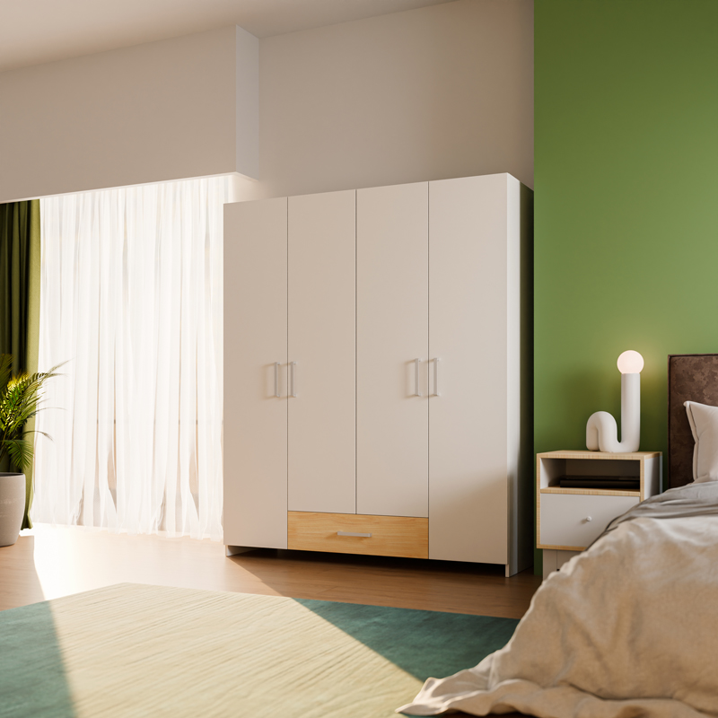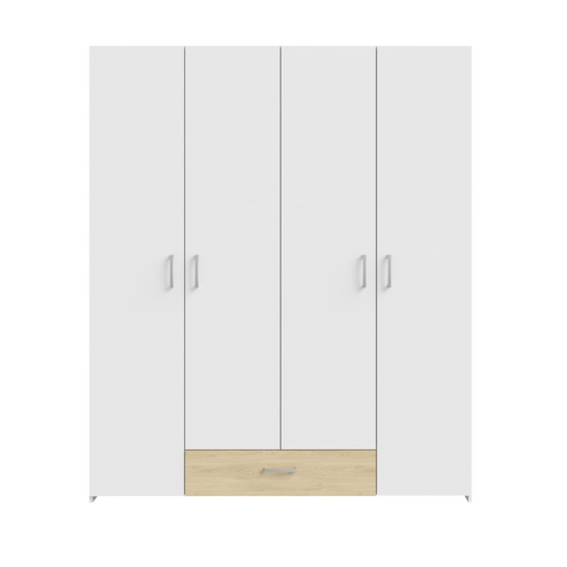 Ντουλάπα ανοιγόμενη τετράφυλλη Generiale pakoworld μελαμίνη λευκή-oak με 3 ράφια γκρι 159×54.5×190.5εκ Εάν ψάχνετε μια μεγάλη ντουλάπα για να τακτοποιήσετε όλα σας τα ρούχα και αξεσουάρ η ντουλάπα Generiale είναι η ιδανική επιλογή. Κλασσική γραμμή και κατασκευή από ποιοτικά υλικά με μεγάλους χώρους αποθήκευσης που την καθιστούν αναγκαία και απαραίτητη για κάθε χώρο. Τεχνικά χαρακτηριστικά: Κατασκευασμένη από μοριοσανίδα επενδυμένη με μελαμίνη υψηλής ποιότητας, με αντοχή στην καταπόνηση και στον χρόνο. Προσφέρεται σε χρώμα λευκό-oak. Περιλαμβάνει τέσσερις μεγάλες πόρτες, εσωτερικά φέρει ράγες για κρεμάστρες και κάτω ένα συρτάρι για την αποθήκευση ρούχων και αξεσουάρ. Τα πόμολα είναι κατασκευασμένα από εξαιρετικής ποιότητας pp.Διαστάσεις ντουλάπας: Μήκος: 159 εκ. Πλάτος: 54.5 εκ. Ύψος: 190.5 εκ. Βάρος αντοχής ράγας: 25 kg. Βάρος αντοχής συρταριού: 5 kg.Τεχνικά χαρακτηριστικά ραφιών: Σετ 3 τεμαχίων. Κατασκευή από μοριοσανίδα με επένδυση μελαμίνης υψηλής ποιότητας, με αντοχή στην καταπόνηση, την φθορά και τον χρόνο. Προσφέρεται σε χρώμα γκρι.Διαστάσεις ραφιών: Μήκος: 77.3 εκ. Πλάτος: 1.5 εκ. Ύψος: 42 εκ. Βάρος αντοχής ραφιών: 15 kg.Πληροφορίες υλικών: Μοριοσανίδα: Η μοριοσανίδα, γνωστή ως chipboard, είναι ένα σύνθετο ξύλινο υλικό που κατασκευάζεται από μικρά κομματάκια ξύλου, συνήθως πεύκου ή ελάτης, κολλημένα μαζί υπό υψηλή πίεση και θερμοκρασία με τη χρήση ρητινών. Χρησιμοποιείται ευρέως στην κατασκευή επίπλων, εσωτερικών επιφανειών και δομικών εφαρμογών. Κατασκευάζεται από ανακυκλωμένα υλικά και είναι ανθεκτική σε καμπύλες, τριβές και άλλες φυσικές καταπονήσεις. Μελαμίνη: Η μελαμίνη LPB (Low Pressure Melamine) είναι ένα συνθετικό υλικό που χρησιμοποιείται ευρέως στην επιφανειακή επεξεργασία μοριοσανίδας στην κατασκευή επίπλων και επιφανειών, λόγω της ανθεκτικότητάς της και της ευκολίας στη συντήρηση. Εφαρμόζεται σε υποστρώματα όπως το MDF (Medium-density fibreboard/ινοσανίδα) ή το κόντρα πλακέ OSB για να παράγει ανθεκτικές επιφάνειες.Οδηγίες συντήρησης: Μοριοσανίδα: Για τον καθαρισμό της μοριοσανίδας, μπορείτε να χρησιμοποιήσετε ένα μαλακό πανί ελαφρά εμποτισμένο με νερό και ήπιο απορρυπαντικό. Αποφύγετε την υπερβολική χρήση νερού και διατηρήστε την επιφάνεια στεγνή μετά τον καθαρισμό. Μελαμίνη: Ένα από τα πιο γνωστά υλικά στον χώρο του επίπλου είναι η μελαμίνη. Για να αφαιρέσετε τους λεκέδες από την επιφάνεια χρησιμοποιείστε ένα μαλακό πανί με χλιαρό νερό και ήπιο σαπούνι. Σκουπίστε απαλά την επιφάνεια μέχρι να αφαιρεθεί ο λεκές. Η μελαμίνη είναι ευαίσθητη στην υγρασία, επομένως είναι σημαντικό να την προστατεύετε από το νερό.Παρατηρήσεις: Το προϊόν παραδίδεται σε εργοστασιακή συσκευασία. Η χρωματική απόχρωση του προϊόντος ενδέχεται να διαφέρει ελαφρώς σε σχέση με την φωτογραφική απεικόνισή του στην οθόνη σας.
