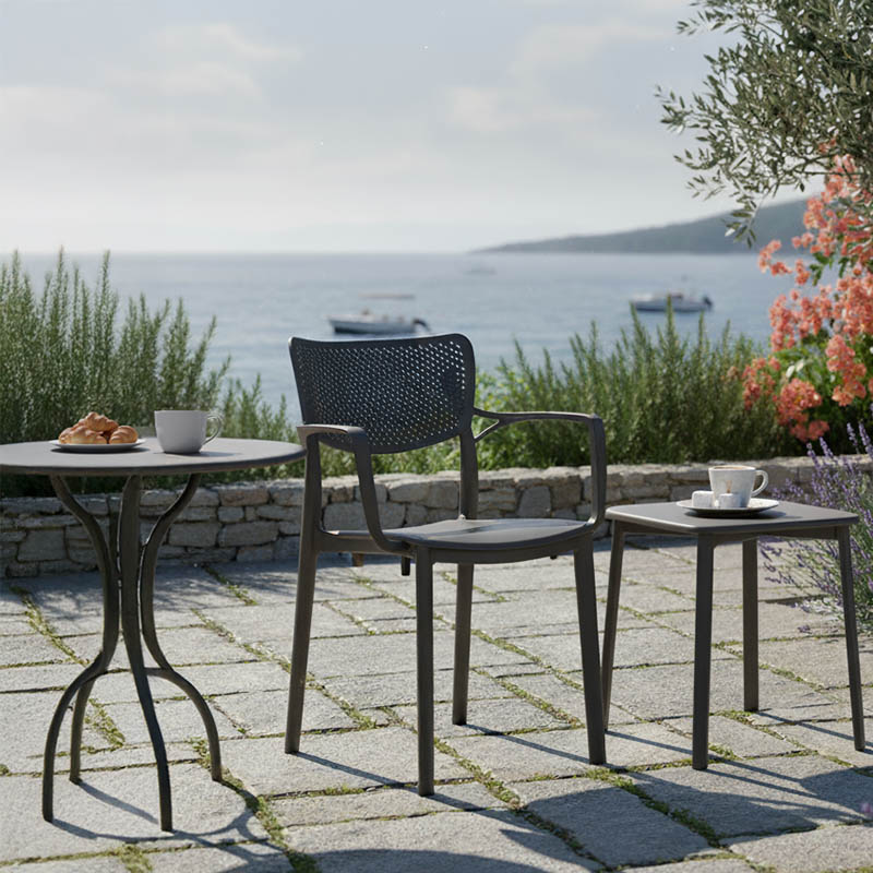 Πολυθρόνα Frontline pakoworld PP ανθρακί Πολυθρόνα Frontline pakoworld PP ανθρακίΓια εσάς που αναζητάτε μία πολυθρόνα για τον κήπο, το μπαλκόνι ή τον επαγγελματικό σας χώρο, η σειρά Frontline είναι η καλύτερη πρόταση της αγοράς. Ο ιδανικός συνδυασμός ποιότητας και άνεσης τη μετατρέπουν σε απαραίτητο αξεσουάρ για κάθε χώρο. Τεχνικά χαρακτηριστικά:* Κατασκευή από εξαιρετικής ποιότητας διάτρητο πολυπροπυλένιο (PP).* Ανθεκτικότητα: Το πολυπροπυλένιο είναι υλικό με μεγάλη αντοχή στις συνθήκες του εξωτερικού περιβάλλοντος (έκθεση σε υγρασία, αέρα, χρήση χημικών κτλ). Μπορεί να καθαριστεί εύκολα με ένα υγρό πανί ή τρεχούμενο νερό, ενώ είναι ένα ανακυκλώσιμο υλικό φιλικό προς το περιβάλλον. * Φέρει ενισχυμένο φίλτρο ηλιοπροστασίας UV για πολύωρη έκθεση στον ήλιο και σε εξωτερικές συνθήκες. * Στιβαζόμενη: Προσφέρει ευκολία στη μεταφορά και στην αποθήκευση. Που το καθιστά ιδανικό για catering και επαγγελματικούς χώρους. * Προσφέρεται σε χρώμα ανθρακίΔιαστάσεις προϊόντος: 56x50x83εκΠαρατηρήσεις:Το προϊόν παραδίδεται στην εργοστασιακή του συσκευασία. Η χρωματική απόχρωση του προϊόντος ενδέχεται να διαφέρει ελαφρώς σε σχέση με την φωτογραφική απεικόνισή του στην οθόνη σας