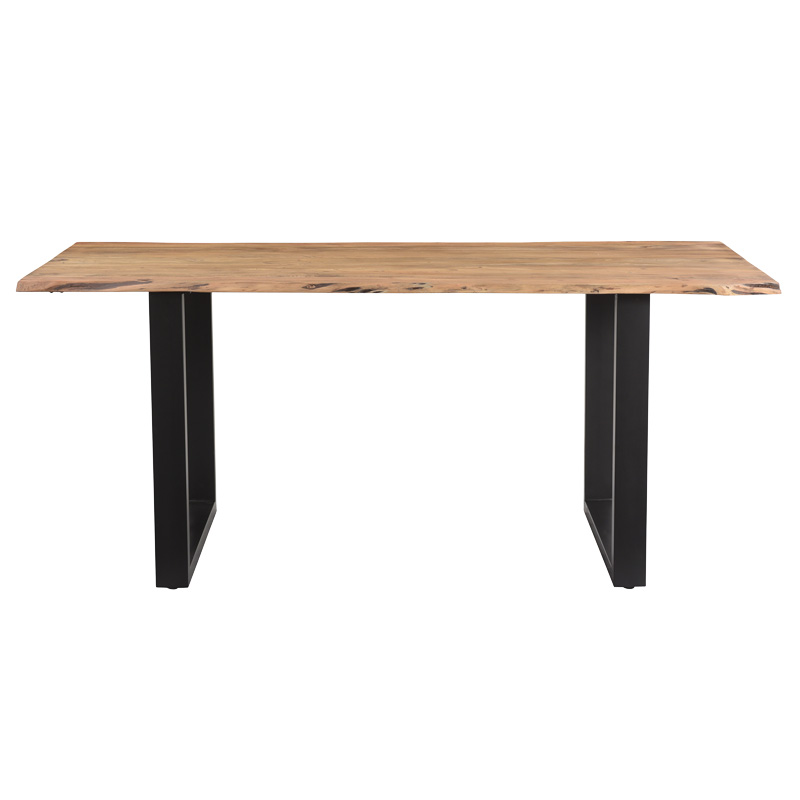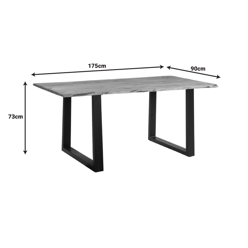 Τραπέζι Slim pakoworld μασίφ ξύλο ακακίας σε καρυδί απόχρωση και μεταλλικό μαύρο πόδι 175x90x75.6εκ Εάν θέλετε να κοσμήσετε το χώρο σας με ένα τραπέζι που συνδυάζει το κλασσικό με το μοντέρνο τότε το Slim είναι η καταλληλότερη επιλογή για εσάς. Η μεγάλου μήκους επιφάνεια του σας προσφέρει απεριόριστες δυνατότητες εργονομίας και διακόσμησης.Τεχνικά χαρακτηριστικά: Η επιφάνεια κατασκευάζεται από μασίφ φυσικό ξύλο ακακίας υψηλής ποιότητας, με αντοχή στην καταπόνηση και στον χρόνο. Το ξύλο ακακίας είναι σκληρό και ανθεκτικό στη φθορά, κάνοντάς το κατάλληλο για επίπλωση και χρήση σε εξωτερικούς χώρους. Είναι γνωστό για την ανθεκτικότητά του, την ομορφιά που προσφέρει το φυσικό του χρώμα και την αντοχή του. Χρησιμοποιείται ευρέως στην κατασκευή επίπλων, δαπέδων, επιφανειών εργασίας και εξωτερικών δομών όπως κήποι και μπαλκόνια. Κάθε κομμάτι αποτελεί και ένα έργο τέχνης, καθώς είναι μοναδικό λόγω της ιδιαίτερης ανομοιομορφίας του κορμού του δέντρου. Μπορεί να φέρει ή να δημιουργήσει ρωγμές στη πορεία του χρόνου (που οφείλονται στην συστολή και διαστολή του μασίφ ξύλου που είναι ζωντανός οργανισμός) και που το καθιστούν ακόμη πιο πρωτότυπο και ιδιαίτερο. Κατά τη διαδικασία παραγωγής πραγματοποιείται επεξεργασία και ομοιομορφία των υπαρχόντων ρωγμών με υλικό κατασκευής από το ίδιο ξύλο. Επομένως, κάθε κομμάτι μπορεί να φέρει μικρές παραλλαγές στην χρωματική τονικότητα και τις διαστάσεις λόγω της φυσικότητας του κορμού του δέντρου. Όλα τα παραπάνω είναι απολύτως φυσικά για μασίφ ξύλο και δεν αποτελούν ελάττωμα του προϊόντος. Βάση στήριξης: Mεταλλικά πόδια βαμμένα σε μαύρο χρώμα. Προσφέρεται σε καρυδί-μαύρο χρώμα.Διάσταση προϊόντος: Μήκος: 175 εκ. Πλάτος: 90 εκ. Ύψος: 75,6 εκ. Πληροφορίες υλικών: Ξύλο ακακίας: Το ξύλο ακακίας είναι σκληρό και ανθεκτικό στη φθορά, κάνοντάς το κατάλληλο για επίπλωση και χρήση σε εξωτερικούς χώρους. Είναι γνωστό για την ανθεκτικότητά του, την ομορφιά που προσφέρει το φυσικό του χρώμα και την αντοχή του. Χρησιμοποιείται ευρέως στην κατασκευή επίπλων, δαπέδων, επιφανειών εργασίας και εξωτερικών δομών όπως κήποι και μπαλκόνια. Μέταλλο: Το μέταλλο χρησιμοποιείται ευρέως στην κατασκευή επίπλων, προσφέροντας μια σειρά από πλεονεκτήματα σε σχέση με άλλα υλικά. Είναι εξαιρετικά ανθεκτικό σε φθορές, ιδανικό για έπιπλα που προορίζονται για καθημερινή χρήση σε ένα απαιτητικό περιβάλλον. Διατηρεί το σχήμα και τη δομή του άψογα, εξασφαλίζοντας σταθερότητα και μακροζωία στα έπιπλα. Εκτός από τις ιδιότητες που αναφέρθηκαν παραπάνω, το μέταλλο μπορεί να έχει και άλλα χαρακτηριστικά, όπως η αντιμικροβιακή δράση (χαλκός) ή υπεραγωγιμότητα (μολυβδένιο).Οδηγίες συντήρησης: Ξύλο ακακίας: Ενώ είναι φυσικά ανθεκτικό υλικό, η σωστή συντήρηση μπορεί να παρατείνει τη διάρκεια ζωής του και να διατηρήσει την όμορφη εμφάνισή του. Καθαρίστε το ξύλο με ένα μαλακό πανί και ήπιο σαπούνι και νερό. Αποφύγετε τη χρήση ισχυρών χημικών ουσιών ή απορρυπαντικών, καθώς αυτά μπορεί να βλάψουν την επιφάνεια και ξεβγάλτε καλά με καθαρό νερό μετά τον καθαρισμό. Μέταλλο: Εάν πρόκειται για οποιοδήποτε μέταλλο εσωτερικού χώρου, ένα ξεσκόνισμα ή ένα καθάρισμα με υγρό πανί σε τακτά χρονικά διαστήματα είναι η ενδεδειγμένη επιλογή. Ωστόσο, εάν πρόκειται για μεταλλικά έπιπλα εξωτερικού χώρου, θα πρέπει να ακολουθήσετε τα παρακάτω βήματα: Για μεγαλύτερη διάρκεια προσ