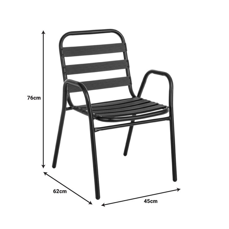 Τραπεζαρία Vergo-Sussie pakoworld 3τεμ μαύρο μέταλλο Φ60×70εκ Θέλετε μια ανθεκτική τραπεζαρία για το μπαλκόνι ή τον κήπο σας που θα αναβαθμίσει αισθητικά το χώρο σας; Η Vergo-Sussie είναι η ιδανική για εσάς καθώς συνδυάζει και αισθητική και ποιότητα κατασκευής.Τεχνικά χαρακτηριστικά τραπεζιού: Σταθερός σκελετός από εξαιρετικής ποιότητας μέταλλο με αντοχή στην καταπόνηση και στη φθορά. Μεγάλη ανθεκτικότητα: κατάλληλο για χρήση σε εξωτερικό χώρο εκτεθειμένο σε καιρικές συνθήκες κι υγρασία. Προσφέρεται σε χρώμα μάυρο.Διαστάσεις τραπεζιού: Μήκος: 60 εκ Πλάτος: 60 εκ Ύψος: 70 εκΤεχνικά χαρακτηριστικά πολυθρόνας: Σταθερός σκελετός από μέταλλο εξαιρετικής ποιότητας με αντοχή σε φθορά και χρόνο, ενώ τα κομμάτια έδρας και πλάτης είναι κατασκευασμένα από φέτες αλουμινίου. Το μέταλλο παρέχει ανθεκτικότητα και σταθερότητα, ενώ οι φέτες αλουμινίου προσθέτουν ελαφρότητα και μια μοντέρνα αίσθηση στον σχεδιασμό. Η πολυθρόνα αυτή είναι ιδανική για χρήση σε εξωτερικούς χώρους, καθώς η ανθεκτικότητα στις καιρικές συνθήκες του αλουμινίου την καθιστά ανθεκτική σε έκθεση στον ήλιο και την υγρασία. Μεγάλη ανθεκτικότητα: κατάλληλο για χρήση σε εξωτερικό χώρο εκτεθειμένο σε καιρικές συνθήκες κι υγρασία. Προσφέρεται σε χρώμα μαύροΔιάσταση πολυθρόνας: Μήκος: 45 εκ Πλάτος: 62 εκ Ύψος: 76 εκΠαρατηρήσεις: Το προϊόν παραδίδεται σε εργοστασιακή συσκευασία και με αναλυτικό οδηγό συναρμολόγησης. Η χρωματική απόχρωση του προϊόντος ενδέχεται να διαφέρει ελαφρώς σε σχέση με την φωτογραφική απεικόνισή του στην οθόνη σας.