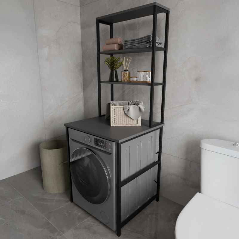 Έπιπλο πλυντηρίου Kylie pakoworld μέταλλο μάυρο σε ανθρακί απόχρωση 60x60x180εκ Το έπιπλο πλυντηρίου Kylie συνδυάζει την πρακτικότητα με το βιομηχανικό στυλ, προσφέροντας μια λύση για την οργάνωση του μπάνιου σας. Σχεδιασμένο για να φιλοξενεί ένα πλυντήριο ρούχων, διαθέτει επίσης ενσωματωμένα ράφια αποθήκευσης για επιπλέον λειτουργικότηταΤεχνικά χαρακτηριστικά: Κατασκευή ραφιών από μοριοσανίδα 18mm με επένδυση υψηλής ποιότητας μελαμίνης υψηλής ποιότητας, με αντοχή στην καταπόνηση, την φθορά και τον χρόνο. Σχεδιασμένο για να φιλοξενεί πλυντήρια ρούχων με τυπικές διαστάσεις, προσφέροντας μια καθαρή και τακτοποιημένη εμφάνιση. Τα ράφια αποθήκευσης προσφέρουν επιπλέον χώρο για την οργάνωση προϊόντων περιποίησης, πετσετών και άλλων αντικειμένων μπάνιου. Ο συνδυασμός του μεταλλικού σκελετού με τα ράφια προσφέρει μια μοντέρνα και βιομηχανική εμφάνιση που ταιριάζει σε κάθε στυλ μπάνιου. Προσφέρεται σε χρώμα μαύρο – ανθρακί.Διαστάσεις προϊόντο: Μήκος: 60 εκ. Πλάτος: 60 εκ. Ύψος: 180 εκ. Ύψος χώρου πλυντηρίου: 91 εκ Πλάτος ραφιού: 16 εκ Υψος ραφιού: 25,3 εκΠαρατηρήσεις: Το προϊόν παραδίδεται αμοντάριστο, σε εργοστασιακή συσκευασία με αναλυτικό οδηγό συναρμολόγησης Η χρωματική απόχρωση του προϊόντος ενδέχεται να διαφέρει ελαφρώς σε σχέση με την φωτογραφική απεικόνισή του στην οθόνη σας.Προσφέρει επιπλέον αποθηκευτικό χώρο και βελτιώνει την οργάνωση του μπάνιου.