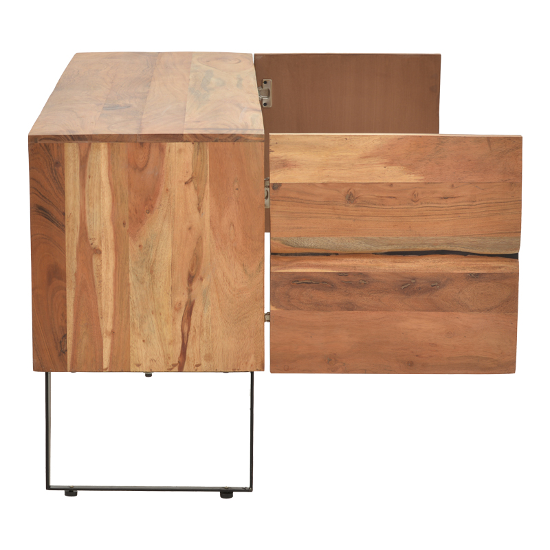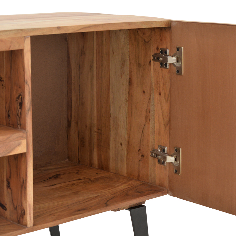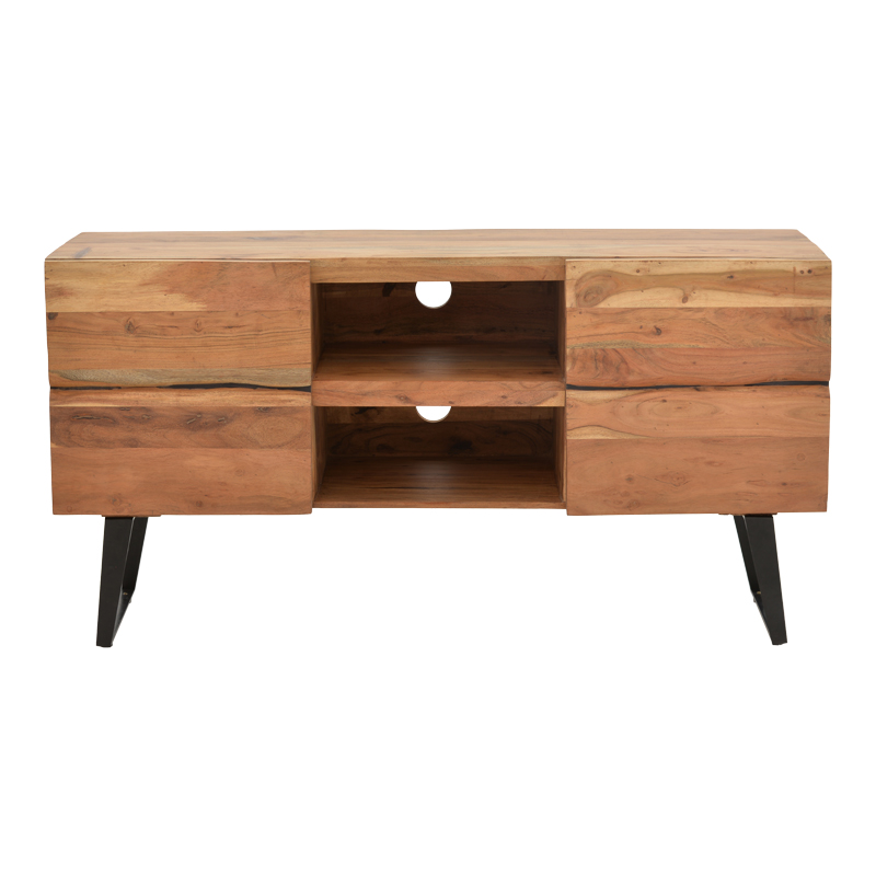 Έπιπλο τηλεόρασης Dervie pakoworld φυσικό μασίφ ξύλο ακακίας 130×43.5×66.5εκ Έπιπλο τηλεόρασης Dervie pakoworld φυσικό μασίφ ξύλο ακακίας 130×43.5×66.5εκΤο έπιπλο τηλεόρασης Dervie θα ανανεώσει ιδανικά τον χώρο με τον εκπληκτικό σχεδιασμό του από μασίφ ξύλο και ακανόνιστες αποχρώσεις του χρώματος καρυδί. Τεχνικά χαρακτηριστικά: Η επιφάνεια κατασκευάζεται από μασίφ φυσικό ξύλο ακακίας υψηλής ποιότητας, με αντοχή στην καταπόνηση και στον χρόνο. Το ξύλο ακακίας είναι σκληρό και ανθεκτικό στη φθορά, κάνοντάς το κατάλληλο για επίπλωση και χρήση σε εξωτερικούς χώρους. Είναι γνωστό για την ανθεκτικότητά του, την ομορφιά που προσφέρει το φυσικό του χρώμα και την αντοχή του. Χρησιμοποιείται ευρέως στην κατασκευή επίπλων, δαπέδων, επιφανειών εργασίας και εξωτερικών δομών όπως κήποι και μπαλκόνια. Κάθε κομμάτι αποτελεί και ένα έργο τέχνης, καθώς είναι μοναδικό λόγω της ιδιαίτερης ανομοιομορφίας του κορμού του δέντρου. Μπορεί να φέρει ή να δημιουργήσει ρωγμές στη πορεία του χρόνου (που οφείλονται στην συστολή και διαστολή του μασίφ ξύλου που είναι ζωντανός οργανισμός) και που το καθιστούν ακόμη πιο πρωτότυπο και ιδιαίτερο. Κατά τη διαδικασία παραγωγής πραγματοποιείται επεξεργασία και ομοιομορφία των υπαρχόντων ρωγμών με υλικό κατασκευής από το ίδιο ξύλο. Επομένως, κάθε κομμάτι μπορεί να φέρει μικρές παραλλαγές στην χρωματική τονικότητα και τις διαστάσεις λόγω της φυσικότητας του κορμού του δέντρου. Όλα τα παραπάνω είναι απολύτως φυσικά για μασίφ ξύλο και δεν αποτελούν ελάττωμα του προϊόντος. Φέρει ντουλάπια για αποθήκευση των αγαπημένων σας μικροαντικειμένων. Προσφέρεται σε χρώμα φυσικό. Βάση στήριξης: Mεταλλικά πόδια βαμμένα σε μαύρο χρώμα.Διάσταση προϊόντος: Μήκος: 130 εκ. Πλάτος: 43.5 εκ. Ύψος: 66.5 εκ. Πληροφορίες υλικών: Ξύλο ακακίας: Το ξύλο ακακίας είναι σκληρό και ανθεκτικό στη φθορά, κάνοντάς το κατάλληλο για επίπλωση και χρήση σε εξωτερικούς χώρους. Είναι γνωστό για την ανθεκτικότητά του, την ομορφιά που προσφέρει το φυσικό του χρώμα και την αντοχή του. Χρησιμοποιείται ευρέως στην κατασκευή επίπλων, δαπέδων, επιφανειών εργασίας και εξωτερικών δομών όπως κήποι και μπαλκόνια. Μέταλλο: Το μέταλλο χρησιμοποιείται ευρέως στην κατασκευή επίπλων, προσφέροντας μια σειρά από πλεονεκτήματα σε σχέση με άλλα υλικά. Είναι εξαιρετικά ανθεκτικό σε φθορές, ιδανικό για έπιπλα που προορίζονται για καθημερινή χρήση σε ένα απαιτητικό περιβάλλον. Διατηρεί το σχήμα και τη δομή του άψογα, εξασφαλίζοντας σταθερότητα και μακροζωία στα έπιπλα. Εκτός από τις ιδιότητες που αναφέρθηκαν παραπάνω, το μέταλλο μπορεί να έχει και άλλα χαρακτηριστικά, όπως η αντιμικροβιακή δράση (χαλκός) ή υπεραγωγιμότητα (μολυβδένιο).Οδηγίες συντήρησης: Ξύλο ακακίας: Ενώ είναι φυσικά ανθεκτικό υλικό, η σωστή συντήρηση μπορεί να παρατείνει τη διάρκεια ζωής του και να διατηρήσει την όμορφη εμφάνισή του. Καθαρίστε το ξύλο με ένα μαλακό πανί και ήπιο σαπούνι και νερό. Αποφύγετε τη χρήση ισχυρών χημικών ουσιών ή απορρυπαντικών, καθώς αυτά μπορεί να βλάψουν την επιφάνεια και ξεβγάλτε καλά με καθαρό νερό μετά τον καθαρισμό. Μέταλλο: Εάν πρόκειται για οποιοδήποτε μέταλλο εσωτερικού χώρου, ένα ξεσκόνισμα ή ένα καθάρισμα με υγρό πανί σε τακτά χρονικά διαστήματα είναι η ενδεδειγμένη επιλογή. Ωστόσο, εάν πρόκειται για μεταλλικά έπιπλα εξωτερικού χώρου, θα πρέπει να ακολουθήσετε τα παρακάτω βήματα: Για μεγαλύτε