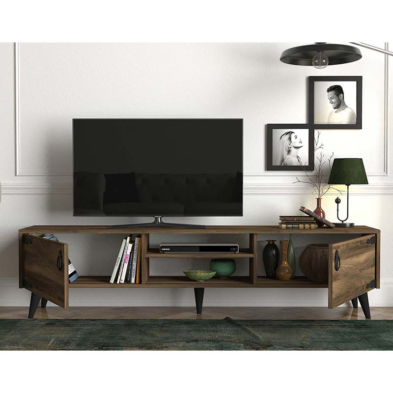 Έπιπλο τηλεόρασης PWF-0283 pakoworld χρώμα σκούρο καρυδί – μαύρο 180x30x41εκ Έπιπλο τηλεόρασης PWF-0283 pakoworld χρώμα σκούρο καρυδί – μαύρο 180x30x41εκΤεχνικά χαρακτηριστικά:* Σώμα & επιφάνεια κατασκευή από clipboard με επένδυση μελαμίνης υψηλής ποιότητας, με αντοχή στην καταπόνηση και στον χρόνο – σε καρυδί – μαύρο χρώμα. * Περιλαμβάνει ράφια και δύο ντουλάπια για μεγαλύτερη χωρητικότητα σε σκούρο καρυδί – μαύρο χρώμα. Διάσταση:Μήκος: 180 εκ.Πλάτος: 30 εκ.Ύψος: 41 εκ. Παρατηρήσεις:Το προϊόν παραδίδεται αμοντάριστο, σε εργοστασιακή συσκευασία και με αναλυτικό οδηγό συναρμολόγησης. Η χρωματική απόχρωση του προϊόντος ενδέχεται να διαφέρει ελαφρώς σε σχέση με την φωτογραφική απεικόνισή του στην οθόνη σας.