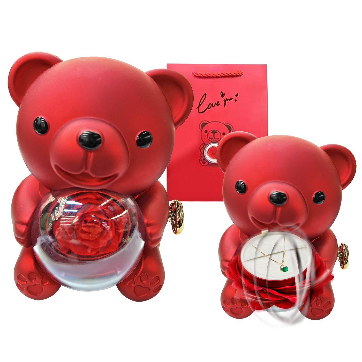 Αρκούδος με Παντοτινό Τριαντάφυλλο 17x11x11cm Homie 423117 -Παντοτινό τριαντάφυλλο αληθινό. Διάρκεια ζωής άνω των 5 ετών. Περιστρεφόμενο με κουμπί για να εμφανιστεί κόσμημα (δε περιέχει κόσμημα). 17x11x11cm