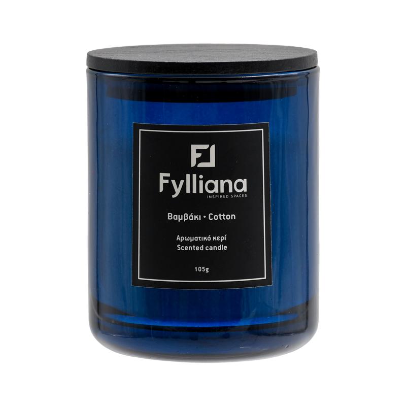 ΑΡΩΜΑΤΙΚΟ ΚΕΡΙ Fylliana FL6478 “ΒΑΜΒΑΚΙ” ΣΕ ΓΥΑΛΙΝΟ ΒΑΖΑΚΙ 105gr ΚΑΙ ΣΥΣΚΕΥΑΣΙΑ ΔΩΡΟΥ ΜΠΛΕ ΧΡΩΜΑ 6.3×7.8εκ