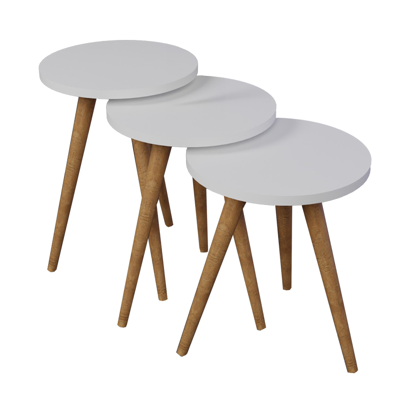 Βοηθητικά τραπέζια Perjene pakoworld σετ 3τεμ μελαμίνη σε λευκή απόχρωση και ξύλινα πόδια Αν ψάχνετε τραπέζια σαλονιού για να δώσετε στυλ στο χώρο σας ή να δημιουργήσετε πρωτότυπες διακοσμητικές συνθέσεις τότε τα Perjene είναι τα ιδανικά για εσάς. Κομψά, λιτά αλλά παράλληλα καλαίσθητα, θα δώσουν νέα πνοή στο χώρο σας.Τεχνικά χαρακτηριστικά: Επιφάνεια κατασκευασμένη από μοριοσανίδα με επένδυση μελαμίνης σε χρώμα λευκό, υψηλής ποιότητας και μεγάλης αντοχής. Στήριξη σε ενισχυμένα ξύλινα πόδια σε φυσικό χρώμα που προσφέρουν εξαιρετική σταθερότητα και αντοχή στη φθορά. Προσφέρεται σε χρώμα λευκό-φυσικό.Διάσταση προϊόντος: Μήκος: 36.5 – 36.5 – 36.5 εκ. Πλάτος: 36.5 – 36.5 – 36.5 εκ. Ύψος: 51 – 48 – 45 εκ.Πληροφορίες υλικών: Μοριοδανίδα: Η μοριοσανίδα, γνωστή ως chipboard, είναι ένα σύνθετο ξύλινο υλικό που κατασκευάζεται από μικρά κομματάκια ξύλου, συνήθως πεύκου ή ελάτης, κολλημένα μαζί υπό υψηλή πίεση και θερμοκρασία με τη χρήση ρητινών. Χρησιμοποιείται ευρέως στην κατασκευή επίπλων, εσωτερικών επιφανειών και δομικών εφαρμογών. Κατασκευάζεται από ανακυκλωμένα υλικά και είναι ανθεκτική σε καμπύλες, τριβές και άλλες φυσικές καταπονήσεις. Μελαμίνη: Η μελαμίνη LPB (Low Pressure Melamine) είναι ένα συνθετικό υλικό που χρησιμοποιείται ευρέως στην επιφανειακή επεξεργασία μοριοσανίδας στην κατασκευή επίπλων και επιφανειών, λόγω της ανθεκτικότητάς της και της ευκολίας στη συντήρηση. Εφαρμόζεται σε υποστρώματα όπως το MDF (Medium-density fibreboard/ινοσανίδα) ή το κόντρα πλακέ OSB για να παράγει ανθεκτικές επιφάνειες. Ξύλος οξιάς: Το ξύλο οξιάς προέρχεται από το δέντρο οξιά, ένα φυλλοβόλο δέντρο που είναι εγγενές στην Ευρώπη και την Ασία. Είναι ένα από τα πιο κοινά σκληρά ξύλα στην Ευρώπη και εκτιμάται για τη σκληρότητα, την ανθεκτικότητα και την ομορφιά του. Διαθέτει ανοιχτό καφέ έως κρεμ χρώμα με λεπτή, ομοιόμορφη υφή. Έχει σφιχτούς πόρους και ελάχιστα ορατά νερά, δίνοντάς του μια καθαρή, κομψή εμφάνιση. Το ξύλο οξιάς είναι επίσης πολύ σκληρό και ανθεκτικό, καθιστώντας το μια καλή επιλογή για έπιπλα και δάπεδα που θα αντέξουν σε βαριά χρήση. Το ξύλο οξιάς είναι εύκολο στην κοπή, τη διαμόρφωση και το φινίρισμα, κάνοντάς το ιδανικό για επίπλωση και άλλες κατασκευές.Οδηγίες συντήρησης: Μοριοσανίδα:Για τον καθαρισμό της μοριοσανίδας, μπορείτε να χρησιμοποιήσετε ένα μαλακό πανί ελαφρά εμποτισμένο με νερό και ήπιο απορρυπαντικό. Αποφύγετε την υπερβολική χρήση νερού και διατηρήστε την επιφάνεια στεγνή μετά τον καθαρισμό. Μελαμίνη: Ένα από τα πιο γνωστά υλικά στον χώρο του επίπλου είναι η μελαμίνη. Για να αφαιρέσετε τους λεκέδες από την επιφάνεια χρησιμοποιείστε ένα μαλακό πανί με χλιαρό νερό και ήπιο σαπούνι. Σκουπίστε απαλά την επιφάνεια μέχρι να αφαιρεθεί ο λεκές. Η μελαμίνη είναι ευαίσθητη στην υγρασία, επομένως είναι σημαντικό να την προστατεύετε από το νερό. Ξύλο οξίας: Χρησιμοποιήστε ένα μαλακό πανί ελαφρώς εμποτισμένο με νερό και ήπιο απορρυπαντικό, για να αφαιρέσετε τη σκόνη και τους λεκέδες από την επιφάνεια του ξύλου. Για να διατηρήσετε τη φυσική ομορφιά του ξύλου και να το προστατεύσετε από υγρασία και φθορά, μπορείτε να χρησιμοποιήσετε ειδικά προϊόντα φινιρίσματος, όπως λάδια ή κεριά, τα οποία θα ενισχύσουν την προστασία και την αντοχή του ξύλου.Παρατηρήσεις: Το προϊόν παραδίδεται αμοντάριστο, σε εργοστασιακή συσκευασία και με αναλυτικό οδηγό συναρμολόγησης. Η χρωματική απόχρωση του