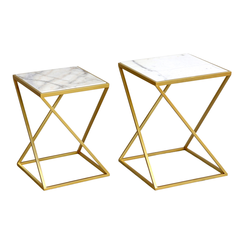 Βοηθητικά τραπεζάκια σαλονιού σετ 2τεμ Zoliene Inart χρυσό μέταλλο-λευκό μαρμάρου Αν ψάχνετε βοηθητικά τραπέζια σαλονιού για να δώσετε στυλ στο χώρο σας ή να δημιουργήσετε πρωτότυπες διακοσμητικές συνθέσεις τότε τα Zoliene είναι τα ιδανικά για εσάς. Κομψά, λιτά αλλά παράλληλα καλαίσθητα, θα δώσουν νέα πνοή στο χώρο σας.Τεχνικά χαρακτηριστικά: Στήριξη σε ενισχυμένο μεταλλικό σκελετό εξαιρετικής ποιότητας χρυσού χρώματος. Κυρίως επιφάνεια από μάρμαρο με νερά στην επιφάνεια του , υψηλής αντοχής στη φθορά και στο χρόνο. Πωλείται σε σετ δύο τεμαχίων. Διαστάσεις προϊόντων:Διαστάσεις μεγάλου τραπεζιού: Μήκος: 40 εκ. Πλάτος: 40 εκ. Ύψος: 53 εκ.Διαστάσεις μικρού τραπεζιού: Μήκος: 34 εκ. Πλάτος: 34 εκ. Ύψος: 47 εκ.Πληροφορίες υλικών: Μέταλλο: Το μέταλλο χρησιμοποιείται ευρέως στην κατασκευή επίπλων, προσφέροντας μια σειρά από πλεονεκτήματα σε σχέση με άλλα υλικά. Είναι εξαιρετικά ανθεκτικό σε φθορές, ιδανικό για έπιπλα που προορίζονται για καθημερινή χρήση σε ένα απαιτητικό περιβάλλον. Διατηρεί το σχήμα και τη δομή του άψογα, εξασφαλίζοντας σταθερότητα και μακροζωία στα έπιπλα. Εκτός από τις ιδιότητες που αναφέρθηκαν παραπάνω, το μέταλλο μπορεί να έχει και άλλα χαρακτηριστικά, όπως η αντιμικροβιακή δράση (χαλκός) ή υπεραγωγιμότητα (μολυβδένιο). Το μάρμαρο είναι ένα μεταμορφωμένο ιζηματογενές πέτρωμα, που προέρχεται από ασβεστόλιθους. Αποτελείται κυρίως από ασβεστίτη (CaCO3) ή και από το συνδυασμό των ορυκτών ασβεστίτη και δολομίτη. Πέρα από τη χρήση του σε κτίρια και γλυπτά, έχει βρει μια ξεχωριστή θέση στον κόσμο των επίπλων. Η φυσική του ομορφιά, η ανθεκτικότητα και η πολυτέλεια που προσδίδει το καθιστούν ένα ιδανικό υλικό για την κατασκευή μοναδικών και διαχρονικών επίπλων.Οδηγίες συντήρησης: Μέταλλο: Εάν πρόκειται για οποιοδήποτε μέταλλο εσωτερικού χώρου, ένα ξεσκόνισμα ή ένα καθάρισμα με υγρό πανί σε τακτά χρονικά διαστήματα είναι η ενδεδειγμένη επιλογή. Μάρμαρο:Καθαρίζετε τακτικά τα μαρμάρινα έπιπλα σας με ένα μαλακό, υγρό πανί και ένα ήπιο καθαριστικό ειδικά σχεδιασμένο για μάρμαρο. Αποφύγετε τα όξινα καθαριστικά, καθώς μπορούν να βλάψουν την επιφάνεια του μαρμάρου. Αποφύγετε την τριβή και ην χρησιμοποιείται σκληρά απορρυπαντικά, καθώς μπορεί να γρατσουνίσει την επιφάνεια του μαρμάρου. Αποφύγετε επίσης να τοποθετείτε καυτά αντικείμενα απευθείας πάνω στο μάρμαρο, καθώς οι απότομες αλλαγές θερμοκρασίας μπορούν να προκαλέσουν ρωγμές.Παρατηρήσεις: Το προϊόν παραδίδεται σε εργοστασιακή συσκευασία Η χρωματική απόχρωση του προϊόντος ενδέχεται να διαφέρει ελαφρώς σε σχέση με την φωτογραφική απεικόνισή του στην οθόνη σας.