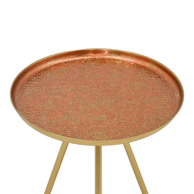 Βοηθητικό τραπέζι Jacksie Inart μπρονζέ-χρυσό μέταλλο Φ46×48εκ Βοηθητικό τραπέζι Jacksie Inart μπρονζέ-χρυσό μέταλλο Φ46×48εκΠρόκειται για μία πρωτοποριακή επιλογή που συνδυάζει το μοντέρνο στυλ με το μινιμαλ. Σχεδιασμένο ειδικά ως βοηθητικό έπιπλο για την κρεβατοκάμαρα ή τον καναπέ.Ένα έπιπλο με μεγάλη ανθεκτικότητα και λειτουργικότητα, ιδανικό για σας υποστηρίξει τις στιγμές ξεγνοιασιάς και χαλάρωσης σας. Τεχνικά χαρακτηριστικά: * Κατασκευασμένο από ενισχυμένο μέταλλο εξαιρετικής ποιότητας με μεγάλη αντοχή σε φθορά και χρήση.* Το εξειδικευμένο του design το κάνει ειδικό για να πάρετε τον καφέ και το πρωϊνό σας στο κρεβάτι.* Προσφέρεται σε χρώμα σάπιο χρυσό-μπρονζέ. Διάσταση προϊόντος:Μήκος: 46 εκ.Πλάτος: 46 εκ.Ύψος: 48 εκ. Παρατηρήσεις:Το προϊόν παραδίδεται αμοντάριστο, σε εργοστασιακή συσκευασία και με αναλυτικό οδηγό συναρμολόγησης. Η χρωματική απόχρωση του προϊόντος ενδέχεται να διαφέρει ελαφρώς σε σχέση με την φωτογραφική απεικόνισή του στην οθόνη σας.