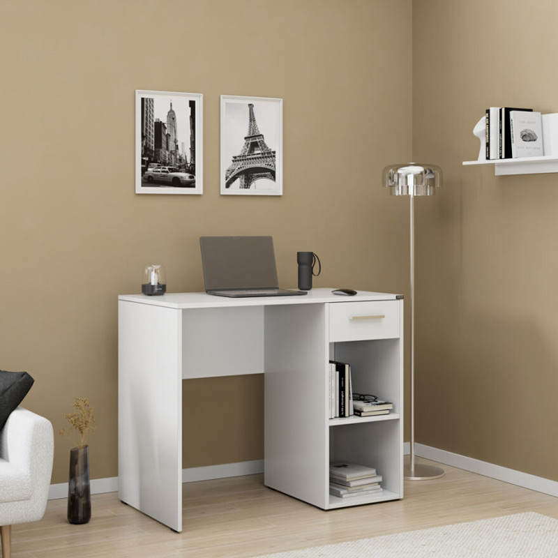 Γραφείο εργασίας Concept pakoworld σε λευκή απόχρωση 90x52x75εκ Το πρακτικό και σύγχρονο γραφείο εργασίας Concept προσφέρει μια ολοκληρωμένη λύση για εργασία, μελέτη και οργάνωση. Με λιτή αλλα και κομψή γραμμή σχεδίασης, ενσωματώνει αποθηκευτικούς χώρους που διευκολύνουν την καθημερινότητα σας, οπου το καθιστά ιδανικό για κάθε χώρο, από οικιακό γραφείο έως φοιτητικό δωμάτιο.Τεχνικά χαρακτηριστικά: Κατασκευασμένο από μοριοσανίδα υψηλής ποιότητας με επένδυση μελαμίνης, ανθεκτική στις φθορές και εύκολη στη συντήρηση. Προσφέρεται στον χρωματικό συνδυασμό: Λευκό Φέρει Ένα πρακτικό συρτάρι για μικροαντικείμενα, γραφική ύλη ή προσωπικά είδη και Δύο ανοιχτά ράφια για αποθήκευση φακέλων, βιβλίων ή διακοσμητικών.Διάσταση προϊόντος: Μήκος: 90 εκ. Πλάτος: 52 εκ. Ύψος: 75 εκ.Πληροφορίες υλικών: Μοριοσανίδα (Chipboard): Η μοριοσανίδα, γνωστή ως chipboard, είναι ένα σύνθετο ξύλινο υλικό που κατασκευάζεται από μικρά κομματάκια ξύλου, συνήθως πεύκου ή ελάτης, κολλημένα μαζί υπό υψηλή πίεση και θερμοκρασία με τη χρήση ρητινών. Χρησιμοποιείται ευρέως στην κατασκευή επίπλων, εσωτερικών επιφανειών και δομικών εφαρμογών. Κατασκευάζεται από ανακυκλωμένα υλικά και είναι ανθεκτική σε καμπύλες, τριβές και άλλες φυσικές καταπονήσεις. Μελαμίνη (LPB): Η μελαμίνη LPB (Low Pressure Melamine) είναι ένα συνθετικό υλικό που χρησιμοποιείται ευρέως στην επιφανειακή επεξεργασία μοριοσανίδας στην κατασκευή επίπλων και επιφανειών, λόγω της ανθεκτικότητάς της και της ευκολίας στη συντήρηση. Εφαρμόζεται σε υποστρώματα όπως το MDF (Medium-density fibreboard/ινοσανίδα) ή το κόντρα πλακέ OSB για να παράγει ανθεκτικές επιφάνειες. Οδηγίες συντήρησης: Μοριοσανίδα (Chipboard): Για τον καθαρισμό της μοριοσανίδας, μπορείτε να χρησιμοποιήσετε ένα μαλακό πανί ελαφρά εμποτισμένο με νερό και ήπιο απορρυπαντικό. Αποφύγετε την υπερβολική χρήση νερού και διατηρήστε την επιφάνεια στεγνή μετά τον καθαρισμό. Μελαμίνη (LPB): Για να αφαιρέσετε τους λεκέδες από την επιφάνεια χρησιμοποιείστε ένα μαλακό πανί με χλιαρό νερό και ήπιο σαπούνι. Σκουπίστε απαλά την επιφάνεια μέχρι να αφαιρεθεί ο λεκές. Η μελαμίνη είναι ευαίσθητη στην υγρασία, επομένως είναι σημαντικό να την προστατεύετε από το νερό.Παρατηρήσεις: Το προϊόν παραδίδεται αμοντάριστο, σε εργοστασιακή συσκευασία και με αναλυτικό οδηγό συναρμολόγησης. Η χρωματική απόχρωση του προϊόντος ενδέχεται να διαφέρει ελαφρώς σε σχέση με την φωτογραφική απεικόνισή του στην οθόνη σας.Το γραφείο Concept συνδυάζει πρακτικότητα και μινιμαλιστική αισθητική, αποτελώντας μια ιδανική επιλογή για όσους αναζητούν λειτουργικότητα και κομψότητα στον χώρο τους.