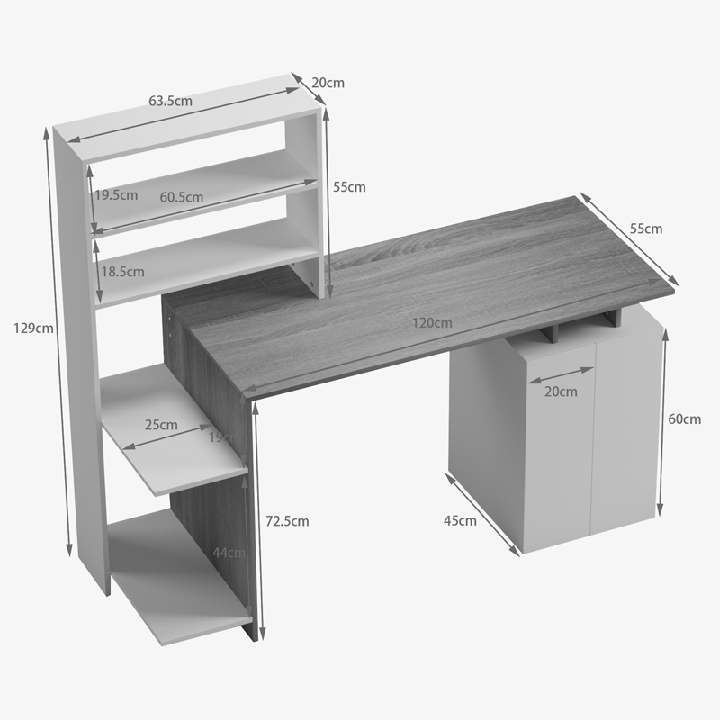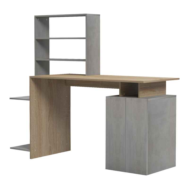 Γραφείο με βιβλιοθήκη και ντουλάπι Meza pakoworld sonoma-γκρι cement 146.3x55x128.8εκ