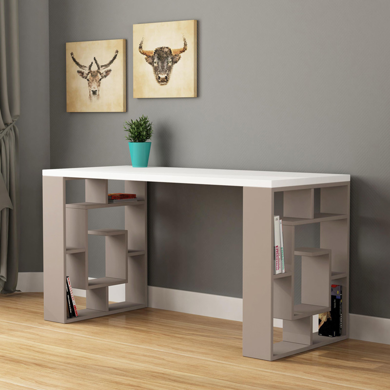 Γραφείο Labirent pakoworld χρώμα λευκό-μόκα 140x60x75εκ Ψάχνετε ένα εντυπωσιακό γραφείο με πρωτοποριακό design που να σας ενθουσιάσει; Το Labirent είναι αυτό που θέλετε. Ο μοντέρνος σχεδιασμός του με πόδια που παραπέμπουν σε λαβύρινθο και η υψηλή ποιότητα κατασκευής του θα το μετατρέψουν στο αγαπημένο σας σημείο εργασίας. Τεχνικά χαρακτηριστικά:* Κατασκευή από μοτιοσανίδα με επένδυση μελαμίνης πάχους 30mm υψηλής ποιότητας, με αντοχή στην καταπόνηση και στον χρόνο. Προσφέρεται στο συνδυασμό χρωμάτων: επιφάνεια σε λευκό και πόδια μοκας.* Τα πόδια του γραφείου σε σχήμα λαβύρινθου μπορούν να χρησιμοποιηθούν και ως ραφιέρα ή βοηθητικός χώρος αποθήκευσης.Διάσταση προϊόντος:Μήκος: 140 εκ.Πλάτος: 60 εκ.Ύψος: 75 εκ.Παρατηρήσεις:Το προϊόν παραδίδεται αμοντάριστο, σε εργοστασιακή συσκευασία και με αναλυτικό οδηγό συναρμολόγησης. Η χρωματική απόχρωση του προϊόντος ενδέχεται να διαφέρει ελαφρώς σε σχέση με την φωτογραφική απεικόνισή του στην οθόνη σας.