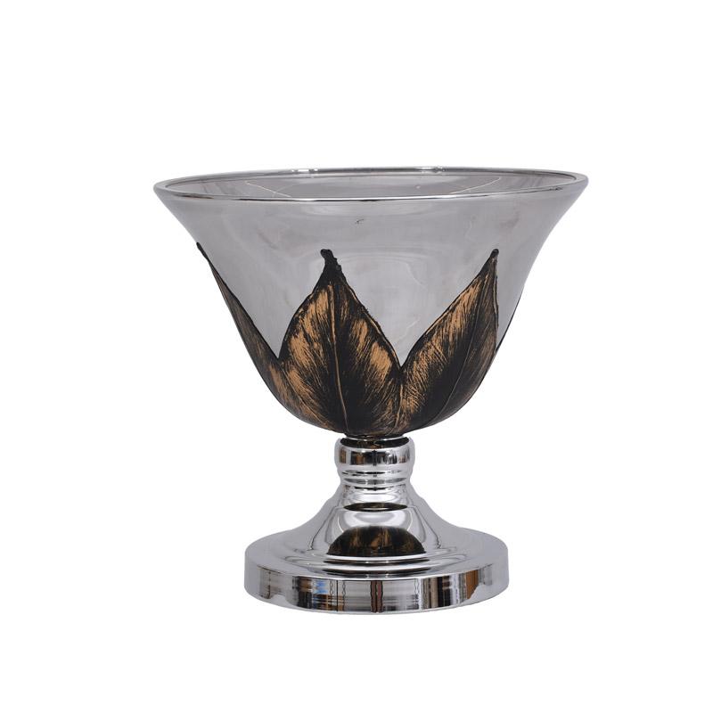 ΓΥΑΛΙΝΗ ΚΟΥΠ ΜΕ ΒΑΣΗ Fylliana FL108 ΜΑΥΡΟ-ΑΣΗΜΙ ΧΡΩΜΑ 25×25εκ
