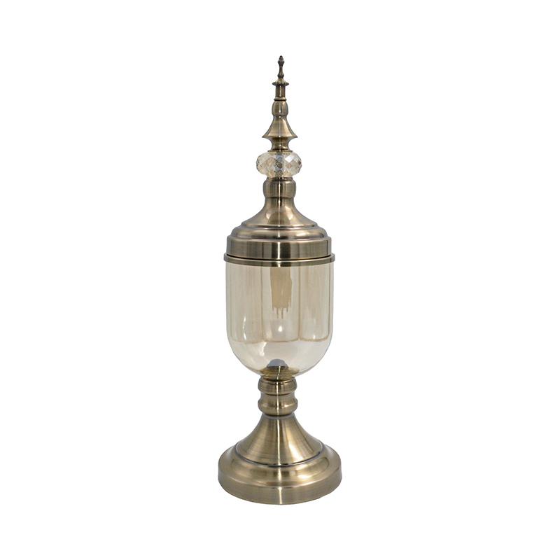 ΓΥΑΛΙΝΟ ΒΑΖΟ ΜΕ ΚΑΠΑΚΙ ΚΑΙ ΜΕΤΑΛΛΙΚΟ ΠΟΔΙ Fylliana FL2016639 ΜΠΡΟΝΖΕ ΧΡΩΜΑ 14x14x48εκ