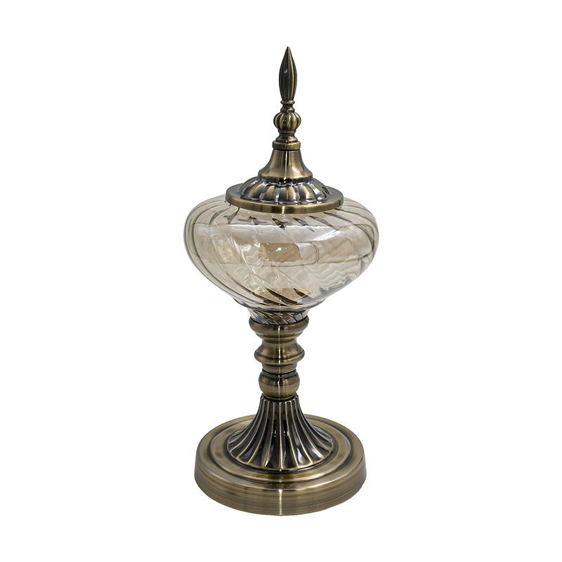 ΓΥΑΛΙΝΟ ΒΑΖΟ ΜΕ ΚΑΠΑΚΙ ΚΑΙ ΜΕΤΑΛΛΙΚΟ ΠΟΔΙ Fylliana FL2016827 ΜΠΡΟΝΖΕ ΧΡΩΜΑ 14x14x29εκ