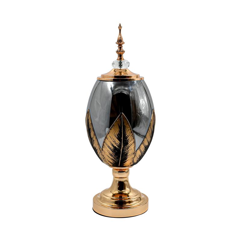 ΓΥΑΛΙΝΟ ΒΑΖΟ ΜΕ ΚΑΠΑΚΙ ΚΑΙ ΜΕΤΑΛΛΙΚΟ ΠΟΔΙ Fylliana FL3087 ΜΑΥΡΟ-ΧΡΥΣΟ ΧΡΩΜΑ 17×47εκ