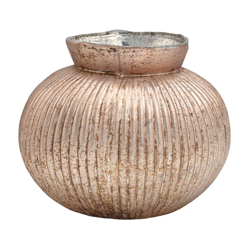 ΓΥΑΛΙΝΟ ΒΑΖΟ Fylliana FL1223 ΡΟΖ ΜΕ ΜΕΤΑΛΛΙΚΟ ΦΙΝΙΡΙΣΜΑ 16×13εκ