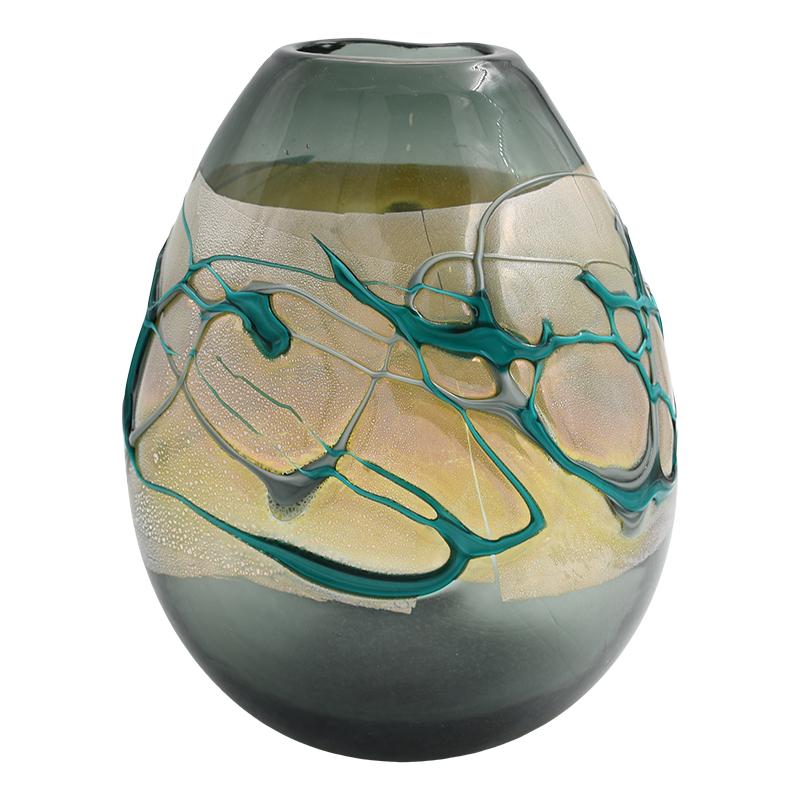 ΓΥΑΛΙΝΟ ΒΑΖΟ Fylliana FL166858 ΑΝΘΡΑΚΙ ΧΡΩΜΑ 24x14x28εκ