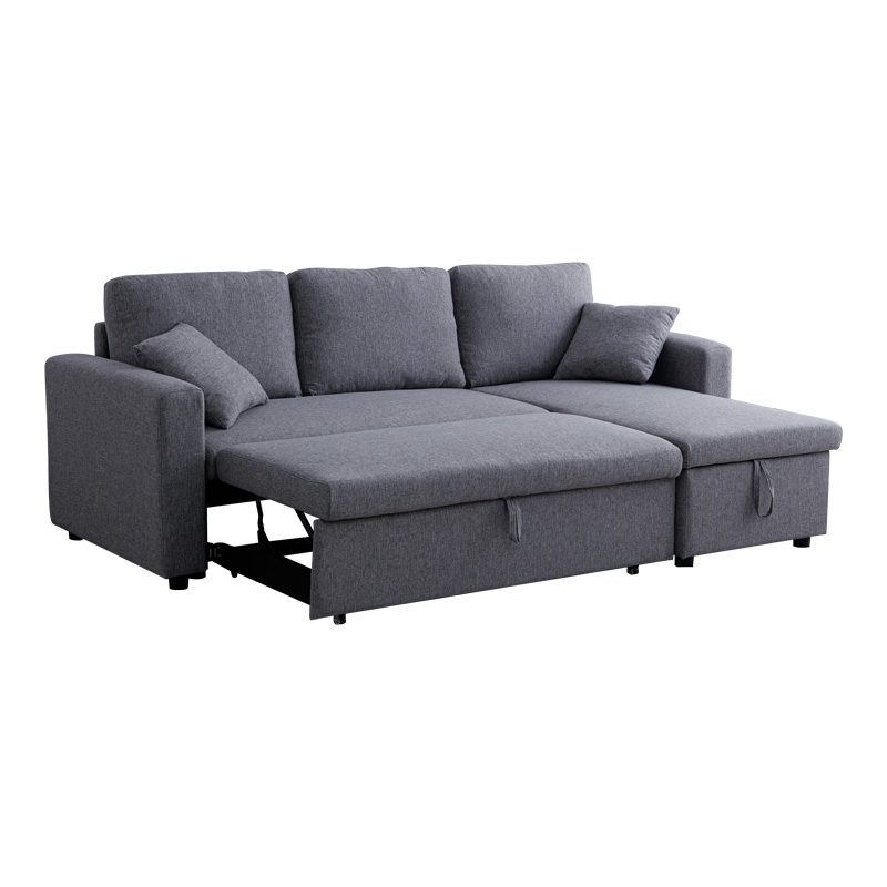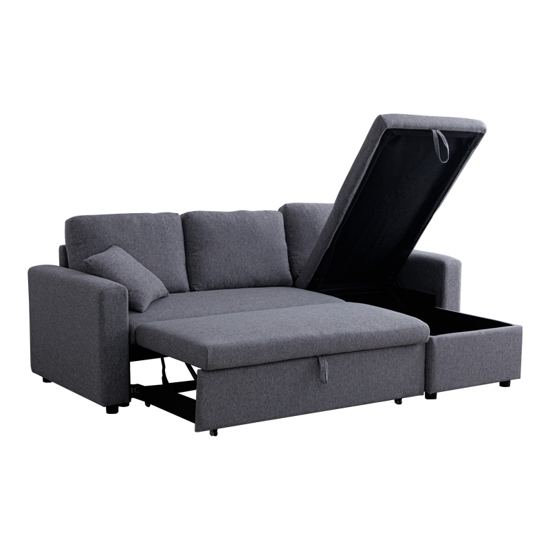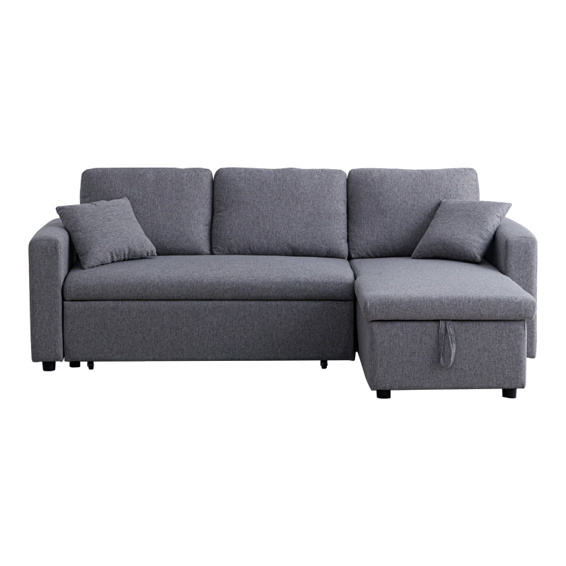 Γωνιακός αναστρέψιμος καναπές κρεβάτι Kamore pakoworld με αποθηκευτικό χώρο γκρι ύφασμα 223x146x85εκ Ο ευέλικτος γωνιακός καναπές Kamore προσφέρει κομψό σχεδιασμό και πρακτική λειτουργικότητα. Διαθέτει άνετα, αφράτα μαξιλάρια πλάτης και καθίσματος και η γωνιακή του διαμόρφωση είναι ιδανική για να εκμεταλλευτεί κάθε εκατοστό ενώ ο ενσωματωμένος αποθηκευτικός χώρος κάτω από το ανάκλιντρο τον καθιστούν εξαιρετικά πρακτικό για κάθε σύγχρονο σαλόνι. Η συμπαγής του κατασκευή και η λιτή του αισθητική το καθιστούν ιδανική επιλογή για όσους αναζητούν άνεση, στυλ και έξυπνες λύσεις αποθήκευσης.Τεχνικά χαρακτηριστικά Κατασκευασμένος εσωτερικά από ενισχυμένο ξύλινο σκελετό με αντοχή στο βάρος, στη φθορά και στο χρόνο. Φέρει εύχρηστο μηχανισμό που με μία μόνο κίνηση ανασηκώνεται, μετατρέποντας τον καναπέ σε κρεβάτι και το αντίστροφο. Φέρει αποθηκευτικό χώρο-μπαούλο. Η κλειστή αποθήκευση των αντικειμένων σας γίνεται πιο εύκολη από ποτέ Foam για άνεση στο κάθισμα. Επένδυση με εξαιρετικής ποιότητας ύφασμα μεγάλης ανθεκτικότητας σε χρώμα γκρι. Ο καναπές διαθέτει κομψά πόδια από PP για την καλύτερη δυνατή στήριξη. Είναι αναστρέψιμος δίνοντας την ευκαιρία να τον τοποθετήσετε είτε με αριστερή γωνία είτε με δεξιά ανάλογα με τις ανάγκες και την διακόσμηση του χώρου σας.Διάσταση προϊόντος: Μήκος: 223 εκ. Πλάτος: 73/146 εκ. Ύψος: 85 εκ.Παρατηρήσεις: Το προϊόν παραδίδεται σε εργοστασιακή συσκευασία με αναλυτικό οδηγό συναρμολόγησης Η χρωματική απόχρωση του προϊόντος ενδέχεται να διαφέρει ελαφρώς σε σχέση με την φωτογραφική απεικόνισή του στην οθόνη σας.