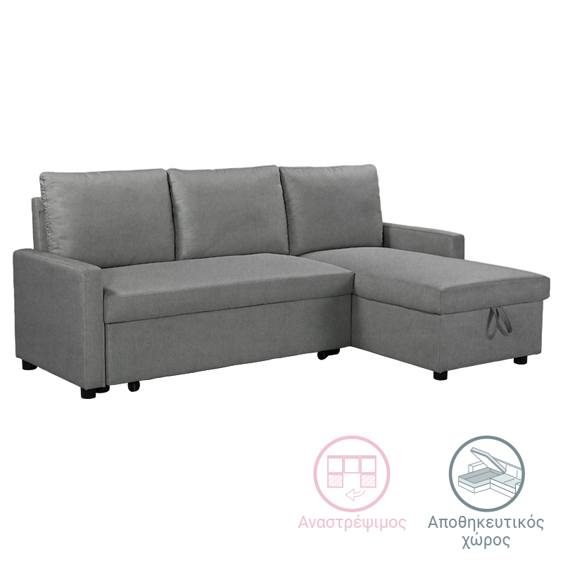 Γωνιακός αναστρέψιμος καναπές κρεβάτι Infuse pakoworld με αποθηκευτικό χώρο με ανθρακί ύφασμα 203x130x88εκ