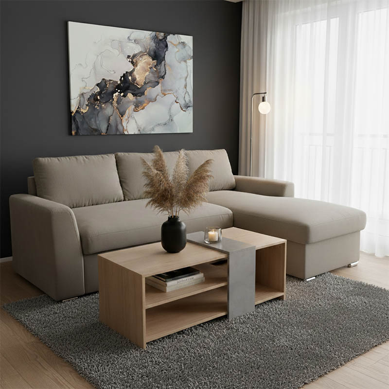 Γωνιακός καναπές-κρεβάτι αριστερή γωνία Belle pakoworld μπεζ 236x164x88εκ Γωνιακός καναπές-κρεβάτι αριστερή γωνία Belle pakoworld μπεζ 236x164x88εκΟ καναπές Belle θα δώσει στο χώρο σας την αίσθηση της πολυτέλειας που χρειάζεται. Ποιοτική κατασκευή, εξαιρετικό design και άνεση συνδυάζονται μοναδικά μεταξύ τους γωνιακό καναπέ κρεβάτι Belle!Τεχνικά χαρακτηριστικά Ενισχυμένος σκελετός κατασκευασμένος από ξύλο πεύκου, κόντρα πλακέ και μοριοσανίδα για μεγαλύτερη αντοχή στο βάρος και με διάρκεια στον χρόνο. Το κάθισμα του διαθέτει ελατήρια zigzag που βοηθούν τον καναπέ να διατηρήσει το σχήμα του και να παραμείνει αναπαυτικός. Επένδυση πλάτης με ελαστικό πλέγμα ειδικά σχεδιασμένο για καναπέδες ποιότητας. Foam πυκνότητας 30/40 dns & σιλικόνη στο κάθισμα. Επένδυση με εξαιρετικής ποιότητας ύφασμα μεγάλης ανθεκτικότητας σε μπεζ χρώμα Φέρει εύχρηστο μηχανισμό που με μία μόνο κίνηση ανασηκώνεται, μετατρέποντας τον καναπέ σε κρεβάτι και το αντίστροφο. Καμπύλος μοντέρνος σχεδιασμός. Ο καναπές διαθέτει κομψά μεταλλικά inox πόδια για την καλύτερη δυνατή στήριξη από μέταλλο μεγάλης ανθεκτικότητας τα οποία είναι εξοπλισμένα με προστατευτικά καλύμματα για την προστασία του πατώματος από ανεπιθύμητες φθορές. Φέρει ανάκλιντρο στην αριστερή πλευρά όπως καθόμαστε, που ανασηκώνεται εύκολα με αμορτισέρ προσφέροντας αποθηκευτικό χώροΔιάσταση προϊόντος: Διάσταση Καναπέ: Μήκος: 236 εκ. Πλάτος με ανάκλινδρο: 164 εκ. Συνολικό ύψος: 88 εκ. Ύψος έδρας: 45 εκ. Ύψος πλάτης: 48 εκ Βάθος έδρας: 62 εκ Ύψος ποδιών: 4 εκ Ύψος μπράτσου από έδρα: 17 εκ Πλάτος μπράτσου: 17 εκΔιάσταση κρεβατιού: 198x155x45 εκ.Πληροφορίες υλικών: Μοριοσανίδα (Chipboard): Η μοριοσανίδα, γνωστή ως chipboard, είναι ένα σύνθετο ξύλινο υλικό που κατασκευάζεται από μικρά κομματάκια ξύλου, συνήθως πεύκου ή ελάτης, κολλημένα μαζί υπό υψηλή πίεση και θερμοκρασία με τη χρήση ρητινών. Χρησιμοποιείται ευρέως στην κατασκευή επίπλων, εσωτερικών επιφανειών και δομικών εφαρμογών. Κατασκευάζεται από ανακυκλωμένα υλικά και είναι ανθεκτική σε καμπύλες, τριβές και άλλες φυσικές καταπονήσεις. Ξύλο Πεύκου: Το πεύκο είναι ένα μαλακό ξύλο, που προέρχεται από κωνοφόρα δέντρα του γένους Pinus. Είναι ελαφρύ και εύκολο στην επεξεργασία, καθιστώντας το ιδανικό για διάφορες εφαρμογές. Έχει χαρακτηριστική εμφάνιση με φυσικά νερά και ανοίγματα, που του προσδίδουν ένα ζεστό και φυσικό αισθητικό αποτέλεσμα. Κόντρα πλακέ (OSB) (Αφορά την εσωτερική κατασκευή του επίπλου): Το κόντρα πλακέ (Oriented Strand Board) , γνωστό και ως ξύλο στρώσης, είναι ένα σύνθετο ξύλινο υλικό που κατασκευάζεται από λεπτές στρώσεις ξύλου, οι οποίες κολλούνται η μία πάνω στην άλλη με διασταυρωμένη διάταξη, ενισχύοντας έτσι τη δομική αντοχή του υλικού. Ύφασμα: Το ύφασμα είναι ένα ευέλικτο υλικό που κατασκευάζεται από την ύφανση, πλέξιμο, βελονιά ή συγκόλληση ινών. Αυτές οι ίνες μπορεί να είναι φυσικές, όπως βαμβάκι, μαλλί ή μετάξι, ή συνθετικές, όπως πολυεστέρας ή νάιλον. Η ύφανση των ινών δημιουργεί ένα δίκτυο που δίνει στο ύφασμα τις ιδιότητές του, όπως η αντοχή, η απαλότητα, η διαπνοή και η ελαστικότητα. Υπάρχουν άπειρες ποικιλίες υφασμάτων, καθεμιά με τα δικά της μοναδικά χαρακτηριστικά και χρήσεις.Οδηγίες συντήρησης: Μοριοσανίδα (Chipboard): Για τον καθαρισμό της μοριοσανίδας, μπορείτε να χρησιμοποιήσετε ένα μαλακό πανί ελαφρά εμποτισμένο με νερό και ήπιο απορρυπαντικό. Αποφύγετε την υπερβολική χρήση νερού και διατηρήστ