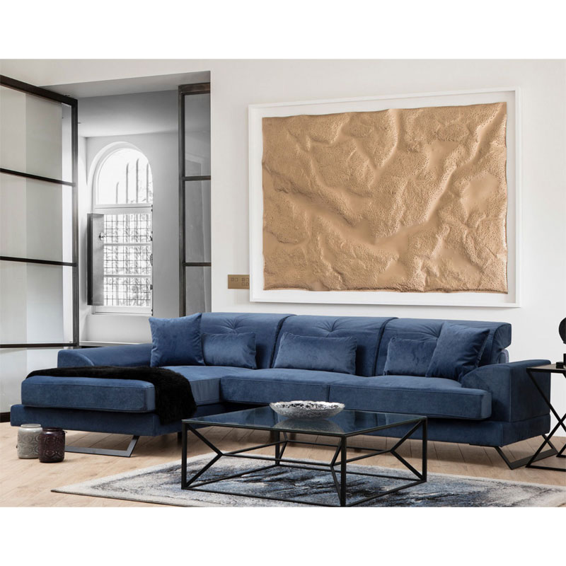 Γωνιακός καναπές PWF-0575 pakoworld δεξιά γωνία ύφασμα μπλε 308/190×92εκ Γωνιακός καναπές PWF-0575 pakoworld δεξιά γωνία ύφασμα μπλε 308/190×92εκH σειρά PWF-0575 είναι για σας που θέλετε να ανανεώσετε το χώρο σας με έναν καναπέ κόσμημα, ιδανικό για το κεντρικό χώρο του σπιτιού σας.Τεχνικά χαρακτηριστικά:- Εσωτερικός σκελετός: Κατασκευασμένος από ενισχυμένο ξύλο οξιά και μοριοσανίδα αντοχής για μεγαλύτερη αντοχή στον χρόνο.- Foam: 28 DNS soft Grey Foam + 24 DNS Feather .- Η πλάτη φέρει 60% Foam και 40% σιλικόνη. Η έδρα περιλαμβάνει ελατήρια.- Επένδυση με ύφασμα polyester 100% ιδανικό για στεγνό καθάρισμα (Dry-cleanable fabric)- Περιλαμβάνει 5 διακοσμητικά μαξιλάρια διαστάσεων: Τα δύο 50εκ x 50εκ και τα άλλα τρία διαστάσεων: 65εκ x 30εκ. – Τα μαξιλάρια της έδρας βγαίνουν ενώ τα μαξιλάρια πλάτης είναι σταθερά.- Φέρει μεταλλικά πόδια μαύρου ματ χρώματος ύψους 14εκ.Διάσταση προϊόντος:Μήκος: 308εκ.Βάθος : 100εκΜήκος ανάκλιντρου : 190 εκ.Συνολικό ύψος: 92εκ.Βάθος καθίσματος: 140 cmΒάθος υποβραχιόνιου: 70 cmΠαρατηρήσεις:Το προϊόν παραδίδεται στην εργοστασιακή του συσκευασία με αναλυτικό οδηγό συναρμολόγησης.Η χρωματική απόχρωση του προϊόντος ενδέχεται να διαφέρει ελαφρώς σε σχέση με την φωτογραφική απεικόνισή του στην οθόνη σας.Σημαντική Σημείωση:Το συγκεκριμένο προϊόν είναι διαθέσιμο κατόπιν παραγγελίας σας.Ο χρόνος παράδοσης είναι περίπου 25 με 30 εργάσιμες ημέρες.Δε γίνεται δεκτή η υπαναχώρηση μετά την αγορά του προιόντος.