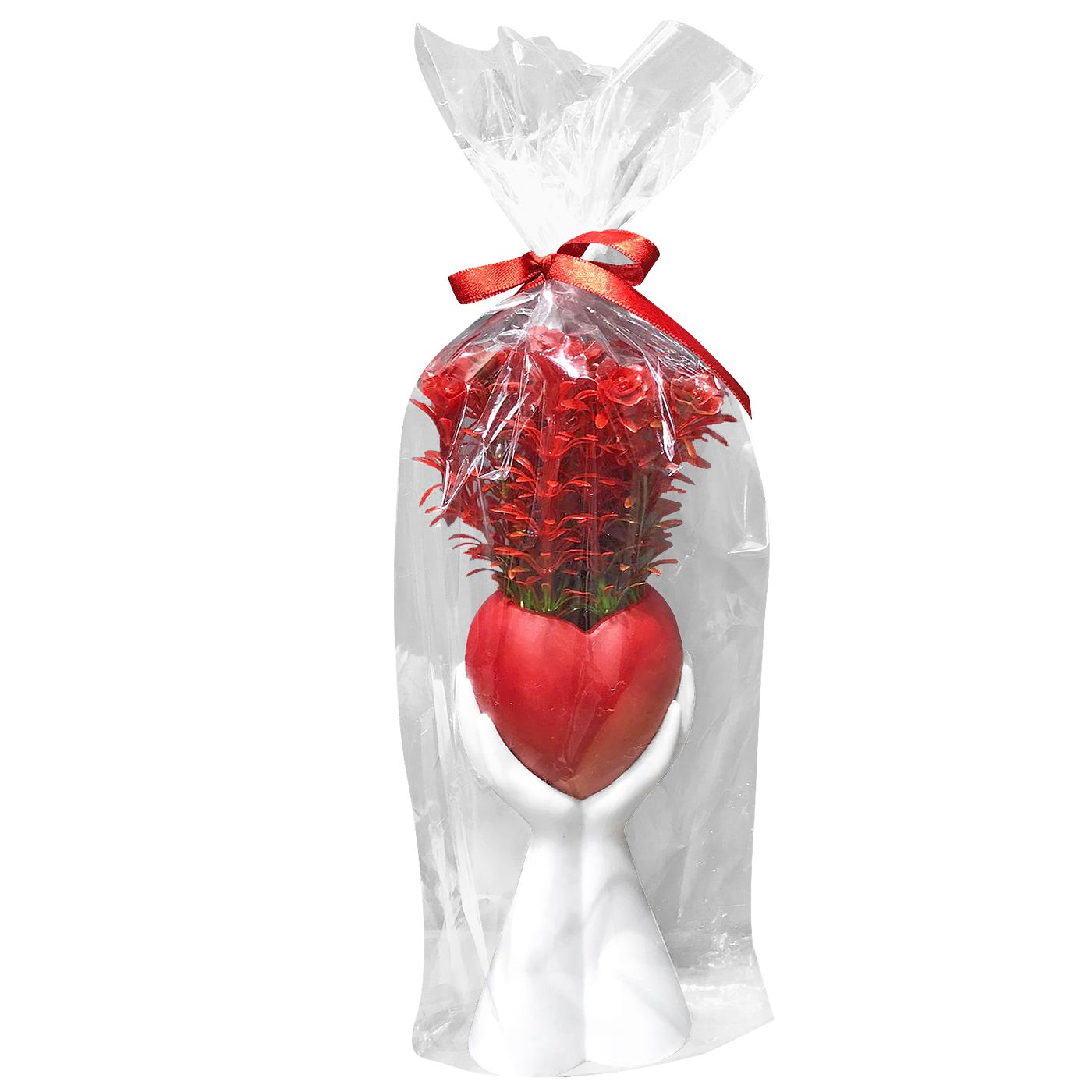 Διακοσμητική Γλάστρα σε Παλάμη με Κόκκινα Άνθη Κόκκινη Καρδιά 35x10cm Homie 423049 -Πλαστική με άνθη 35x10cm