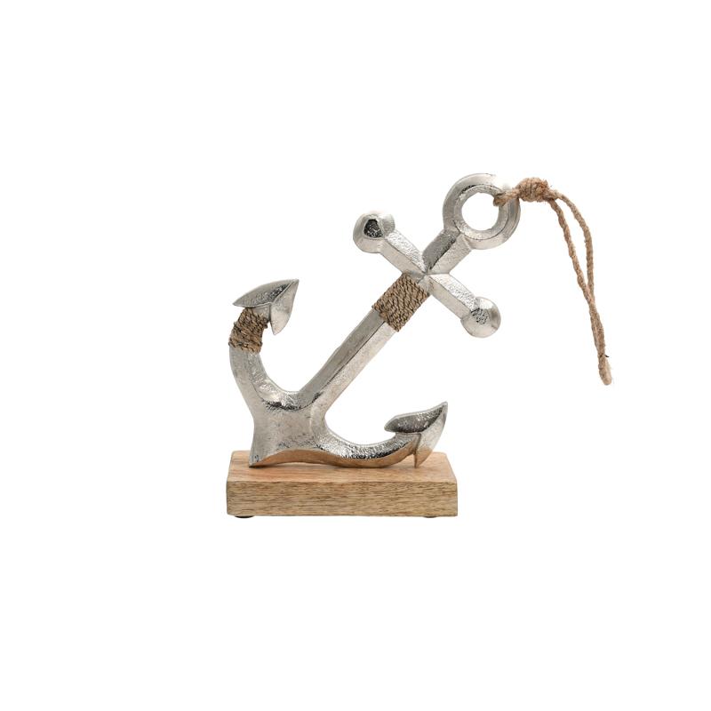 ΔΙΑΚΟΣΜΗΤΙΚΟ ΑΛΟΥΜΙΝΙΟΥ Fylliana Anchor 756 ΜΕ ΞΥΛΙΝΗ ΒΑΣH ΑΣΗΜΙ ΧΡΩΜΑ 16x6x20εκ