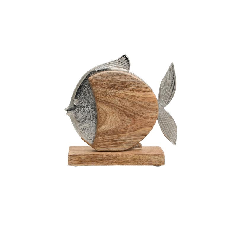 ΔΙΑΚΟΣΜΗΤΙΚΟ ΑΛΟΥΜΙΝΙΟΥ Fylliana Fish 845 ΜΕ ΞΥΛΙΝΗ ΒΑΣH ΑΣΗΜΙ ΧΡΩΜΑ 20x5x19εκ