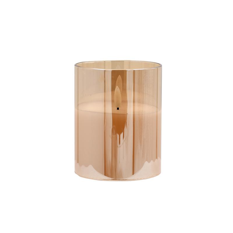 ΔΙΑΚΟΣΜΗΤΙΚΟ LED ΚΕΡΙ ΜΕ ΡΕΑΛΙΣΤΙΚΗ 3D ΦΛΟΓΑ Fylliana FL1013 ΣΕ ΓΥΑΛΙ ΧΡΩΜΑ AMBER 10x10x13εκ –
