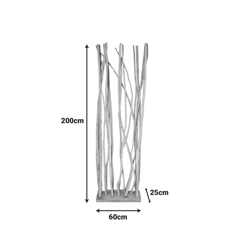 Διακοσμητικό δαπέδου Barbin pakoworld teak-suar ξύλο σε φυσική απόχρωση 60x25x200εκ Θέλεις ο χώρος σου να αποκτήσει νέα πνοή και αισθητική αξία; Αν ναι, το επιδαπέδιο διακοσμητικό Barbin είναι εδώ για εσένα. Με μινιμαλιστική διάθεση έρχεται να απογειώσει κάθε χώρο.Τεχνικά χαρακτηριστικά: Κατασκευασμένο από εξαιρετικής ποιότητας teak ξύλο και βάση από suar ξύλο με υψηλή αντοχή στον χρόνο και τη φθορά. Το προϊόν από το συγκεκριμένο ξύλο μπορεί να έχει ρωγμές ή να εμφανίσει στο μέλλον. Αυτό δεν θεωρείται ελάττωμα, καθώς δημιουργείται από την συστολή και διαστολή του φυσικού ξύλου μασίφ. Επίσης, μπορεί να υπάρχουν χρωματικές διαφορές σε διάφορα σημεία του προϊόντος, καθώς ομοιομορφοποιούνται οι ρωγμές με κομμάτια του ίδιου ξύλου. Προσφέρεται σε χρώμα φυσικό.Διαστάσεις προϊόντος: Μήκος: 60 εκ. Πλάτος: 25 εκ. Ύψος: 200 εκ.Πληροφορίες υλικών: Τeak ξύλο: Είναι ένα είδος ξύλου που προέρχεται από το δέντρο Tectona grandis. Είναι γνωστό για την υψηλή του αντοχή και ανθεκτικότητα στη διάβρωση και την υγρασία. Έχει εξαιρετική αντίσταση στις καιρικές συνθήκες και αντοχή στην υγρασία, κάνοντάς το ιδανικό για εξωτερικές εφαρμογές. Επιπλέον, έχει φυσικά χαρακτηριστικά νερά και χρώματα που το καθιστούν πολύ ελκυστικό. Η χρωματική του απόχρωση μπορεί να ποικίλει από χρυσαφί έως καφέ με γκρι τόνους. Suar wood: Το ξύλο Suar, γνωστό και ως ασιατικό μαόνι ή Meranti, είναι ένα τροπικό σκληρό ξύλο που προέρχεται από τη Νοτιοανατολική Ασία, κυρίως από την Ινδονησία, τη Μαλαισία και τις Φιλιππίνες. Φημίζεται για το πανέμορφο καστανό-κόκκινο χρώμα του, τη λεπτή του υφή και την ανθεκτικότητά του. Αποτελεί δημοφιλή επιλογή για την κατασκευή επίπλων, καθώς είναι πολύ ανθεκτικό ξύλο με μεγάλη αντοχή στη φθορά. Οδηγίες συντήρησης: Τeak ξύλο: Για τον καθαρισμό του teakwood, χρησιμοποιήστε ένα μαλακό πανί ελαφρά εμποτισμένο με νερό και ήπιο σαπούνι. Ξεπλύνετε καλά και στεγνώστε με ένα καθαρό πανί. Suar wood: Χρησιμοποιήστε ένα μαλακό πανί που έχει εμποτιστεί σε ζεστό νερό και ήπιο σαπούνι για να καθαρίσετε το ξύλο. Σκουπίστε απαλά το ξύλο με το πανί, ακολουθώντας την κατεύθυνση της ίνας. Μην χρησιμοποιείτε ισχυρά χημικά ή καθαριστικά, καθώς αυτά μπορούν να βλάψουν το φινίρισμα του ξύλου. Αφήστε το ξύλο να στεγνώσει εντελώς στον αέρα πριν το χρησιμοποιήσετε ξανά.Παρατηρήσεις: Το προϊόν παραδίδεται μονταρισμένο σε εργοστασιακή συσκευασία. Η χρωματική απόχρωση του προϊόντος ενδέχεται να διαφέρει ελαφρώς σε σχέση με την φωτογραφική απεικόνισή του στην οθόνη σας.