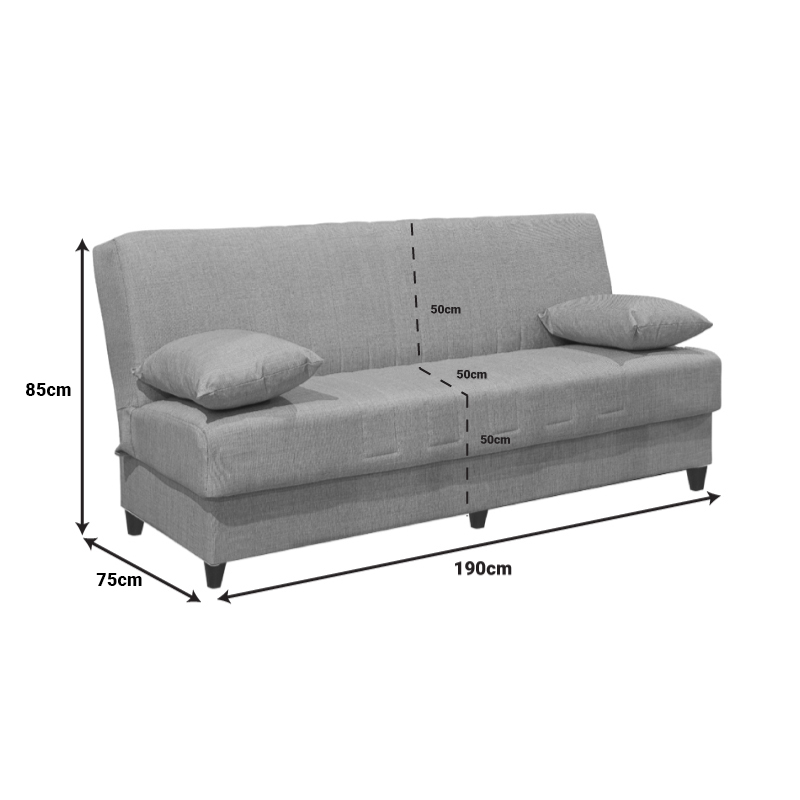 Καναπές-κρεβάτι με αποθηκευτικό χώρο τριθέσιος Romina pakoworld ανθρακί ύφασμα 190x75x85εκ