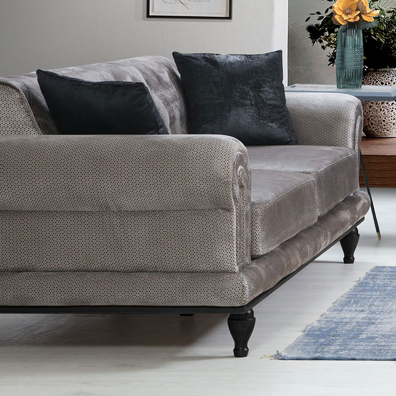 Καναπές 3θέσιος PWF-0522 pakoworld ύφασμα γκρι-μαύρο 230x95x78εκ Καναπές 3θέσιος PWF-0522 pakoworld ύφασμα γκρι-μαύρο 230x95x78εκH σειρά PWF-0522 είναι για σας που θέλετε να ανανεώσετε το χώρο σας με έναν καναπέ κόσμημα, ιδανικό για το κεντρικό χώρο του σπιτιού σας. Τεχνικά χαρακτηριστικά:- Εσωτερικός σκελετός: Κατασκευασμένος από ενισχυμένο ξύλο οξιά και μοριοσανίδα αντοχής με μεγάλη αντοχή στον χρόνο.- Foam: 8 εκ 28 DNS + 5 cm 24 DNS για το κάθισμα και 5 εκ 28 DNS για την πλάτη.- Επένδυση με ύφασμα polyester 100% ιδανικό για στεγνό καθάρισμα (Dry-cleanable fabric)- Η πλάτη είναι ανακλινόμενη προσφέροντας σας μεγαλύτερη επιφάνεια κρεβατιού για άνετο ύπνο.- Περιλαμβάνει 2 διακοσμητικά μαξιλάρια διαστάσεων 45×45εκ (60% foam + 40% σιλικόνη)- Τα μαξιλάρια της έδρας βγαίνουν.- Στήριξη σε ανθεκτικά, κομψά ξύλινα πόδια σε μαύρο χρώμα.Διάσταση προϊόντος:Μήκος: 230 εκΠλάτος: 95 εκΣυνολικό ύψος: 78 εκΎψος έδρας: 44 εκΎψος ποδιών: 16 εκΠαρατηρήσεις:Το προϊόν παραδίδεται στην εργοστασιακή του συσκευασία (Μόνο τα ποδαράκια χρειάζονται βίδωμα).Η χρωματική απόχρωση του προϊόντος ενδέχεται να διαφέρει ελαφρώς σε σχέση με την φωτογραφική απεικόνισή του στην οθόνη σας.