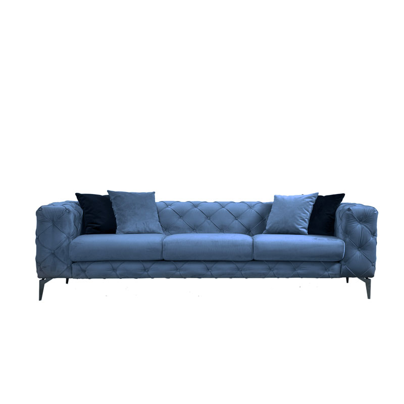 Καναπές 3θέσιος PWF-0579 pakoworld τύπου Chesterfield ύφασμα ανοιχτό μπλε 237x90x73εκ Καναπές 3θέσιος PWF-0579 pakoworld τύπου Chesterfield ύφασμα ανοιχτό μπλε 237x90x73εκH σειρά PWF-0579 είναι για σας που θέλετε να ανανεώσετε το χώρο σας με έναν καναπέ κόσμημα, ιδανικό για το κεντρικό χώρο του σπιτιού σας.Τεχνικά χαρακτηριστικά:- Εσωτερικός σκελετός: Κατασκευασμένος από ενισχυμένο ξύλο οξιάς και μοριοσανίδα με επένδυση μελαμίνης.- Foam: 28 και 24 DNS για το κάθισμα και 24 DNS για την πλάτη.- Επένδυση με ύφασμα 100% polyester υψηλής ποιότητας το οποίο είναι ιδανικό για στεγνό καθάρισμα (Dry-cleanable fabric).- Τα μαξιλάρια του καθίσματος (πάχος 15 εκ) είναι αποσπώμενα ενώ της πλάτης είναι σταθερά.- Φέρει δύο διακοσμητικά μαξιλάρια διαστάσεων 45×45 εκ- Φέρει πόδια από μέταλλο σε ασημί χρώμα. Διάσταση προϊόντος:Μήκος: 237 εκ.Πλάτος: 90 εκ.Συνολικό ύψος: 73 εκ.Βάθος έδρας: 66 εκΜήκος έδρας καθαρό: 184 εκΔιαστάσεις μπράτσων: 27×90 εκ.Παρατηρήσεις:Το προϊόν παραδίδεται στην εργοστασιακή του συσκευασία (Μόνο τα ποδαράκια χρειάζονται βίδωμα).Η χρωματική απόχρωση του προϊόντος ενδέχεται να διαφέρει ελαφρώς σε σχέση με την φωτογραφική απεικόνισή του στην οθόνη σας.Σημαντική Σημείωση:Το συγκεκριμένο προϊόν είναι διαθέσιμο κατόπιν παραγγελίας σας.Ο χρόνος παράδοσης είναι περίπου 25 με 30 εργάσιμες ημέρες.Δε γίνεται δεκτή η υπαναχώρηση μετά την αγορά του προϊόντος.