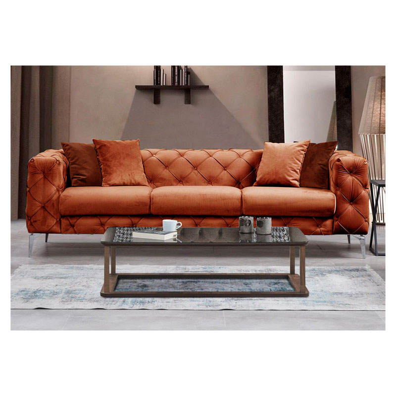 Καναπές 3θέσιος PWF-0579 pakoworld τύπου Chesterfield ύφασμα κεραμιδί 237x90x73εκ