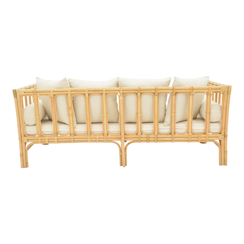 Καναπές Alessa pakoworld φυσικό rattan-λευκό ύφασμα με μαξιλάρια 200x100x76εκ Για εσάς που ψάχνετε ένα καναπέ που να εντυπωσιάζει με την αισθητική και την ποιότητα κατασκευής του, ο καναπές Alessa είναι η καλύτερη επιλογή. Συνδυάζει εργονομία, λειτουργικότητα και αισθητική.Τεχνικά χαρακτηριστικά: Σταθερός σκελετός από εξαιρετικής ποιότητας φυσικό rattan με αντοχή στην καταπόνηση και στη φθορά σε φυσικό χρώμα. Φέρει μαξιλάρια με επένδυση foam για την έδρα του καθίσματος σε λευκό χρώμα για καλύτερη στήριξη και άνετο κάθισμα. Διαθέτει τέσσερα μαξιλάρια πλάτης και δύο κυλινδρικά από ύφασμα σε λευκό χρώμα. Μπορεί να χρησιμοποιηθεί σε εσωτερικό και σε στεγασμένο εξωτερικό χώρο. Προσφέρεται σε φυσικό-λευκό χρώμα.Διαστάσεις προϊόντος: Μήκος: 200 εκ. Πλάτος: 100 εκ. Ύψος: 76 εκ.Πληροφορίες υλικών: Rattan: Το φυσικό rattan είναι ένα υλικό που προέρχεται από το φυτό rattan, το οποίο ανήκει στην οικογένεια των palm. Eίναι εξαιρετικά ελαστικό και ανθεκτικό υλικό και μπορεί να αντέξει τη χρήση και το βάρος χωρίς να σπάσει εύκολα. Το rattan έχει μια φυσική ομορφιά και θερμή υφή που το καθιστά δημοφιλές στην επίπλωση και διακόσμηση εξωτερικών και εσωτερικών χώρων. Ύφασμα: Το ύφασμα είναι ένα ευέλικτο υλικό που κατασκευάζεται από την ύφανση, πλέξιμο, βελονιά ή συγκόλληση ινών. Αυτές οι ίνες μπορεί να είναι φυσικές, όπως βαμβάκι, μαλλί ή μετάξι, ή συνθετικές, όπως πολυεστέρας ή νάιλον. Η ύφανση των ινών δημιουργεί ένα δίκτυο που δίνει στο ύφασμα τις ιδιότητές του, όπως η αντοχή, η απαλότητα, η διαπνοή και η ελαστικότητα. Υπάρχουν άπειρες ποικιλίες υφασμάτων, καθεμιά με τα δικά της μοναδικά χαρακτηριστικά και χρήσεις.Οδηγίες συντήρησης: Rattan: Για την συντήρησή του συνίσταται καθαρισμός με ήπιο σαπούνι και νερό με σφουγγάρι. Αποφύγετε την υπερβολική έκθεση σε ηλιακό φως, καθώς αυτό μπορεί να προκαλέσει αποχρωματισμό ή φθορά. Ύφασμα: Η συντήρηση του υφάσματος εξαρτάται από διάφορους παράγοντες, όπως το είδος της ίνας, η κατασκευή του υφάσματος και η χρήση του. Χρησιμοποιήστε ένα ήπιο απορρυπαντικό που είναι κατάλληλο για τον τύπο του υφάσματος. Αποφύγετε τη χρήση χλωρίνης ή λευκαντικών, καθώς μπορεί να βλάψουν τις ίνες.Παρατηρήσεις: Το προϊόν παραδίδεται στην εργοστασιακή του συσκευασία. Η χρωματική απόχρωση του προϊόντος ενδέχεται να διαφέρει ελαφρώς σε σχέση με την φωτογραφική απεικόνισή του στην οθόνη σας.