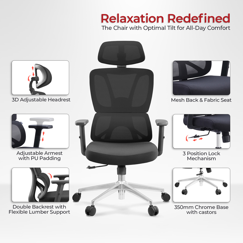 Καρέκλα γραφείου διευθυντή Aish pakoworld mesh ύφασμα μαύρο 64x66x130εκ