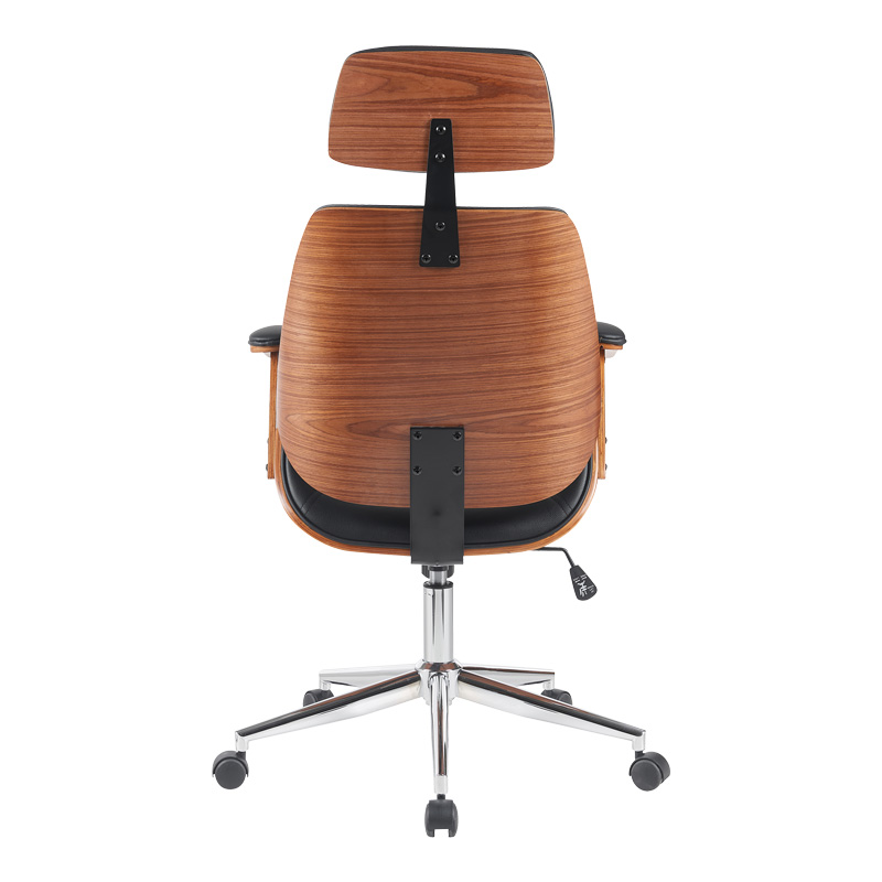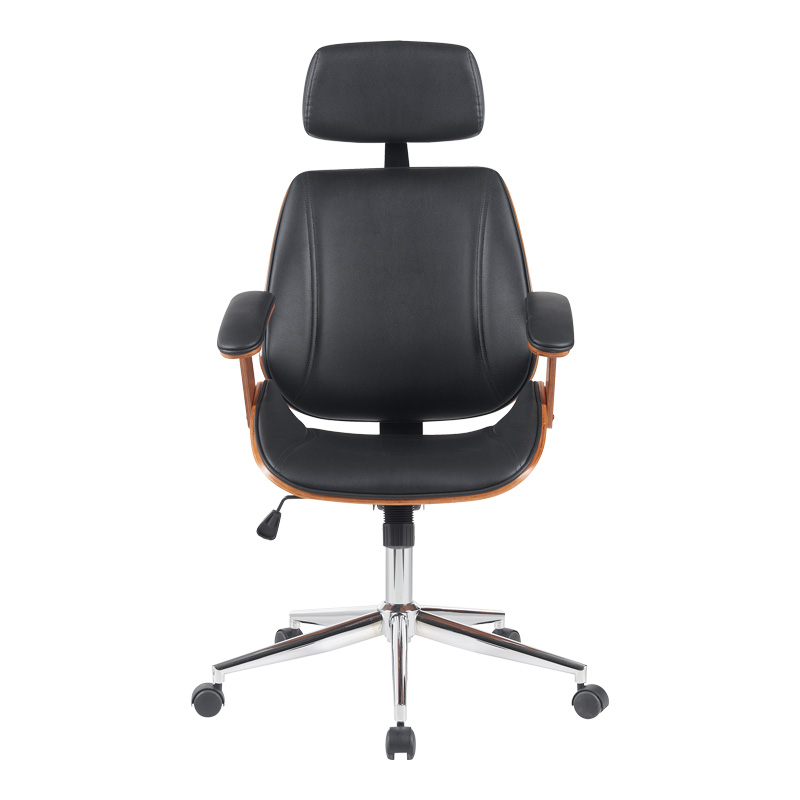 Καρέκλα γραφείου διευθυντή Fetseno pakoworld μαύρο pu-βάση χρωμίου 53x56x113.5-123.5εκ Απογειώστε την εργονομία και την αισθητική του γραφείου σας με την πολυτελή καρέκλα διευθυντή Fetseno. Σχεδιασμένη για απόλυτη άνεση και στήριξη κατά τις πολύωρες εργασίες, διαθέτει ψηλή πλάτη με ενσωματωμένο προσκέφαλο που ανακουφίζει την ένταση στον αυχένα και τους ώμους. Η κομψή της εμφάνιση θα αναδείξει τον επαγγελματικό σας χώρο. καθώς ειναι η ιδανική επιλογή για κάθε απαιτητικό διευθυντή.Τεχνικά χαρακτηριστικά: Λεπτομέρειες από plywood εξαιρετικής ποιότητας σε καρυδί απόχρωση. Επένδυση από υψηλής ανθεκτικότητας pu μαύρου χρώματος. Προσφέρεται σε μαύρο-καρυδί χρώμα. Ανθεκτικός μεταλλικός σκελετός: με τροχήλατη πεντακτινωτή μεταλλική βάση υψηλών αντοχών. Δυνατότητα εύκολης περιστροφής και μετακίνησης προς κάθε κατεύθυνση.Διαστάσεις προϊόντος: Μήκος: 53 εκ. Πλάτος: 56 εκ. Ύψος: 113.5-123.5 εκ. Ύψος μπράτσου: 71-81 εκ. Παρατηρήσεις: Το προϊόν παραδίδεται αμοντάριστο σε εργοστασιακή συσκευασία, με αναλυτικό οδηγό συναρμολόγησης. Η χρωματική απόχρωση του προϊόντος ενδέχεται να διαφέρει ελαφρώς σε σχέση με την φωτογραφική απεικόνισή του στην οθόνη σας.