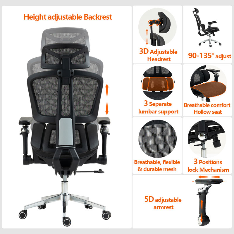 Καρέκλα γραφείου διευθυντή Jeffer pakoworld mesh σε μαύρη απόχρωση 67x62x115-125εκ
