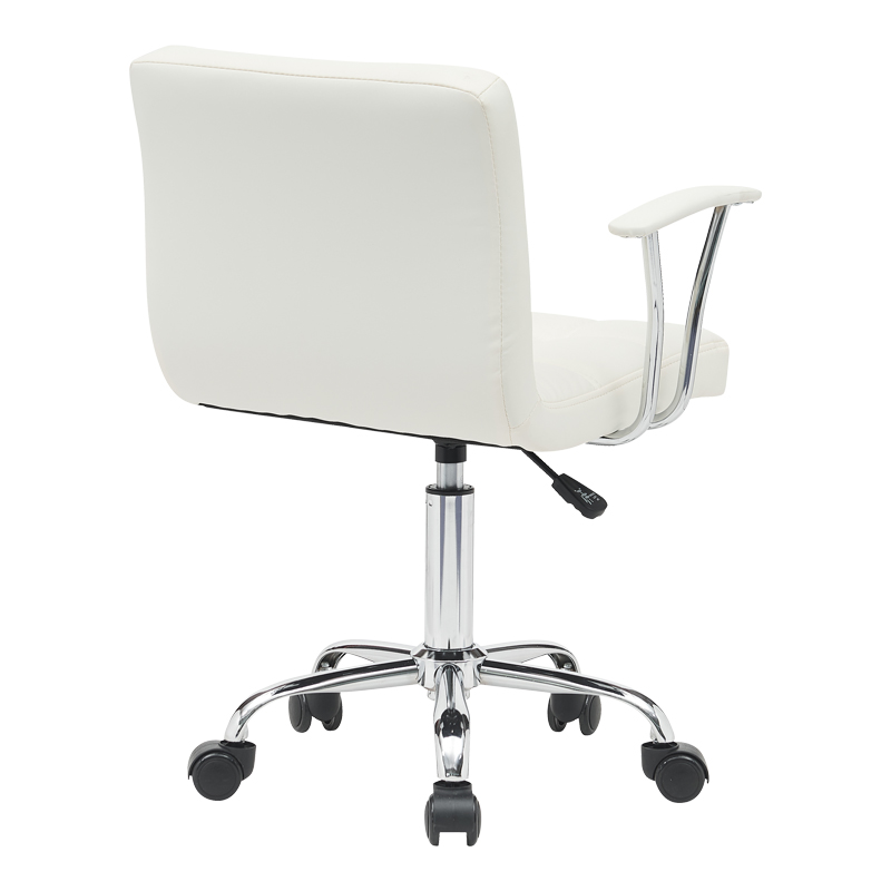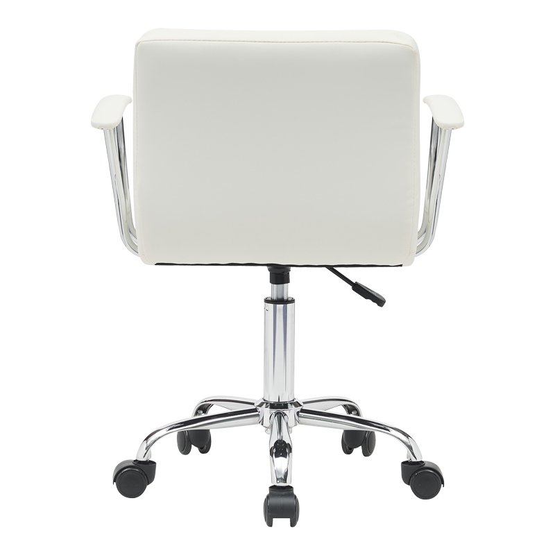 Καρέκλα γραφείου Buleco pakoworld pu σε λευκή απόχρωση 56x46x74-86εκ Η καρέκλα γραφίου Buleco συνδυάζει το μοντέρνο σχεδιασμό με τη λειτουργικότητα, προσφέροντας μια κομψή και εργονομική λύση για τον χώρο εργασίας σας. Κατασκευασμένη με σύγχρονα ανθεκτικά υλικά προσφέρει εξαιρετική ποιότητα , χαρίζοντας σας ταυτόχρονα design και άνεση. Ιδανική και για το σπίτι αλλά και το γραφείο.Τεχνικά χαρακτηριστικά: Υψηλής πυκνότητας foam στην πλάτη και το κάθισμα για την απόλυτη άνεση. Ανθεκτικός μεταλλικός σκελετός. Δυνατότητα εύκολης περιστροφής 360 ‘και μετακίνησης προς κάθε κατεύθυνση. Επένδυση με τεχνόδερμα υψηλής ποιότητας που παρέχει ανθεκτικότητα στον χρόνο αλλά και την δυνατότητα του εύκολου καθαρισμού. Προσφέρεται σε λευκό χρώμα.Διάσταση προϊόντος: Μήκος: 56 εκ. Βάθος: 46 εκ. Ύψος: 74-86 εκ. Ύψος έδρας: 44-56 εκ Πλάτος έδρας: 42 εκ Ύψος πλάτης: 31 εκ Μέγιστο βάρος: 120 κιλάΠληροφορίες υλικών: Pu – Τεχνόδερμα / δερματίνη (Επένδυση): Το PU είναι απομίμηση δέρματος και αναφέρεται συνήθως στο πολυμερές πολυουρεθάνη (Polyurethane), ένα υλικό που χρησιμοποιείται ευρέως σε πολλούς τομείς λόγω των εξαιρετικών του ιδιοτήτων. Έχει ικανοποιητικές αντοχές, καθαρίζεται εύκολα, είναι αδιάβροχο, δεν παραμορφώνεται και είναι φιλικό ως προς το περιβάλλον. Μέταλλο: Το μέταλλο χρησιμοποιείται ευρέως στην κατασκευή επίπλων, προσφέροντας μια σειρά από πλεονεκτήματα σε σχέση με άλλα υλικά. Είναι εξαιρετικά ανθεκτικό σε φθορές, ιδανικό για έπιπλα που προορίζονται για καθημερινή χρήση σε ένα απαιτητικό περιβάλλον. Διατηρεί το σχήμα και τη δομή του άψογα, εξασφαλίζοντας σταθερότητα και μακροζωία στα έπιπλα. Εκτός από τις ιδιότητες που αναφέρθηκαν παραπάνω, το μέταλλο μπορεί να έχει και άλλα χαρακτηριστικά, όπως η αντιμικροβιακή δράση (χαλκός) ή υπεραγωγιμότητα (μολυβδένιο).Οδηγίες συντήρησης: PU τεχνόδερμα: Χρησιμοποιείστε ένα μαλακό πανί για να αφαιρέσετε τυχόν σκόνη από την επιφάνεια. Για λεκέδες χρησιμοποιείστε χλιαρό νερό και ήπιο σαπούνι και σκουπίστε την περιοχή. Πάντα να στεγνώνετε την επιφάνεια μετά με ένα στεγνό πανί ώστε να μην μείνουν σημάδια νερού. Μέταλλο: Εάν πρόκειται για οποιοδήποτε μέταλλο εσωτερικού χώρου, ένα ξεσκόνισμα ή ένα καθάρισμα με υγρό πανί σε τακτά χρονικά διαστήματα είναι η ενδεδειγμένη επιλογή. Παρατηρήσεις: Το προϊόν παραδίδεται αμοντάριστο, σε εργοστασιακή συσκευασία και με αναλυτικό οδηγό συναρμολόγησης. Η χρωματική απόχρωση του προϊόντος ενδέχεται να διαφέρει ελαφρώς σε σχέση με την φωτογραφική απεικόνισή του στην οθόνη σας.
