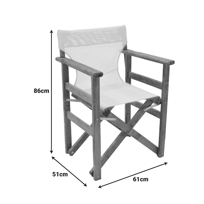 Καρέκλα-πολυθρόνα σκηνοθέτη Retto pakoworld μασίφ ξύλο οξιάς καρυδί-πανί εκρού Ψάχνεις μία πολυθρόνα δοκιμασμένη στον χρόνο ως προς την άνεση, την ποιότητα και με ένα κλασσικό design; Σταμάτα να ψάχνεις, γιατί η πολυθρόνα σκηνοθέτη Retto είναι εδώ.Μία βαρέως τύπου κατασκευή από μασίφ ξύλο φουρνιστής οξιάς, επεξεργασμένη με τρόπο ώστε να αντέχει σε δύσκολες καιρικές συνθήκες, ιδανική για το μπαλκόνι, τον κήπο και το εξοχικό σας.Τόσο ανθεκτική που προτείνεται και για επαγγελματική χρήση. Τεχνικά χαρακτηριστικά: Κατασκευασμένη από ενισχυμένο ξύλινο σκελετό αρίστης ποιότητας από ξύλο φουρνιστής οξιάς σε χρώμα καρυδί και με βερνίκι εμποτισμού για μεγαλύτερη προστασία. Διαθέτει πανί διάτρητο εκρού χρώματος υψηλών αντοχών. Το κάθισμα είναι πτυσσόμενο για εύκολη αποθήκευση όταν δεν χρησιμοποιείται. Κλασσικός σχεδιασμός με υψηλές αντοχές στον χρόνο και την υγρασία. Ενδείκνυται για εξωτερικούς και επαγγελματικούς χώρους.Διάσταση προϊόντος: Μήκος: 61 εκ. Πλάτος: 51 εκ. Ύψος: 86 εκ.Παρατηρήσεις: Το προϊόν παραδίδεται μονταρισμένο στην εργοστασιακή του συσκευασία. Η χρωματική απόχρωση του προϊόντος ενδέχεται να διαφέρει ελαφρώς σε σχέση με την φωτογραφική απεικόνισή του στην οθόνη σας.