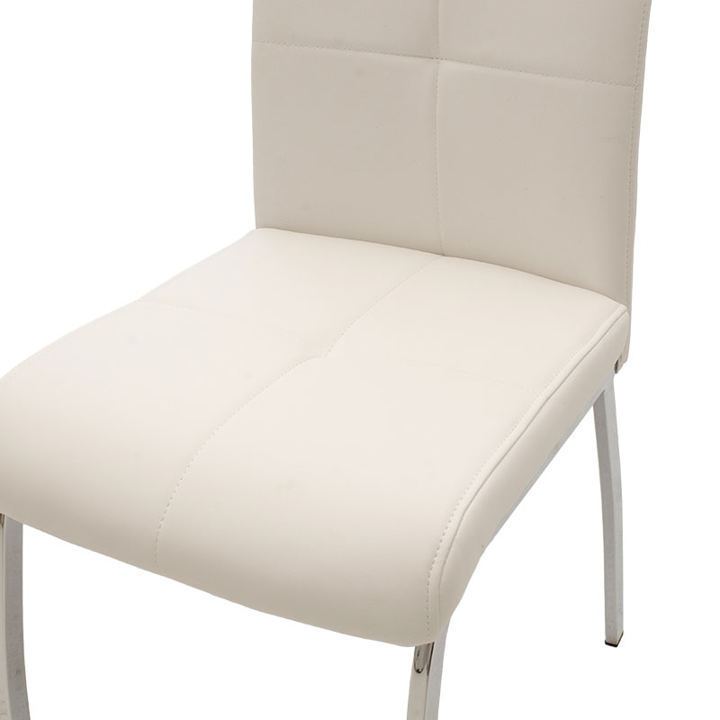 Καρέκλα Ariadne pakoworld PU λευκό-πόδι χρωμίου Καρέκλα Ariadne pakoworld μεταλλική χρωμίου με pu λευκόΨάχνεις ένα κάθισμα με μοντέρνο σχεδιασμό που να συνδυάσει αρμονικά το πρωτοποριακό design με τα ανθεκτικά υλικά της εποχής σου; Αν ναι, τότε η καρέκλα Ariadne είναι η επιλογή σου.Ένα σύγχρονο κάθισμα που θα ανανεώσει αισθητά την διακόσμηση του χώρου σου. Τεχνικά χαρακτηριστικά: *Πλάτη και έδρα κατασκευασμένες από ενισχυμένο σκελετό και επενδυμένες με τεχνόδερμα υψηλών αντοχών. Παρέχει ανθεκτικότητα και εύκολη δυνατότητα καθαρισμού, προσφέρεται σε λευκό χρώμα. *Ο σχεδιασμός της πλάτης ακολουθεί την σπονδυλική στήλη, στηρίζοντας τη μέση με τη μοντέρνα ελαφρώς καμπύλη μορφή της. *Στήριξη σε μεταλλικό επιχρωμιωμένο σκελετό που καταλήγει σε 4 ενισχυμένα πόδια, εξαιρετικής ποιότητας και αντοχής, τόσο στο βάρος όσο και στο χρόνο. *Οι καταλήξεις των ποδιών διαθέτουν προστατευτικά πλαστικά καλύμματα για την προστασία του πατώματος από ανεπιθύμητες φθορές.Διάσταση προϊόντος Μήκος: 43εκ.Πλάτος: 63εκ.Ύψος: 96εκ.Ύψος έδρας: 47εκΠαρατηρήσεις:Το προϊόν παραδίδεται αμοντάριστο, σε εργοστασιακή συσκευασία και με αναλυτικό οδηγό συναρμολόγησης. Η χρωματική απόχρωση του προϊόντος ενδέχεται να διαφέρει ελαφρώς σε σχέση με την φωτογραφική απεικόνισή του.