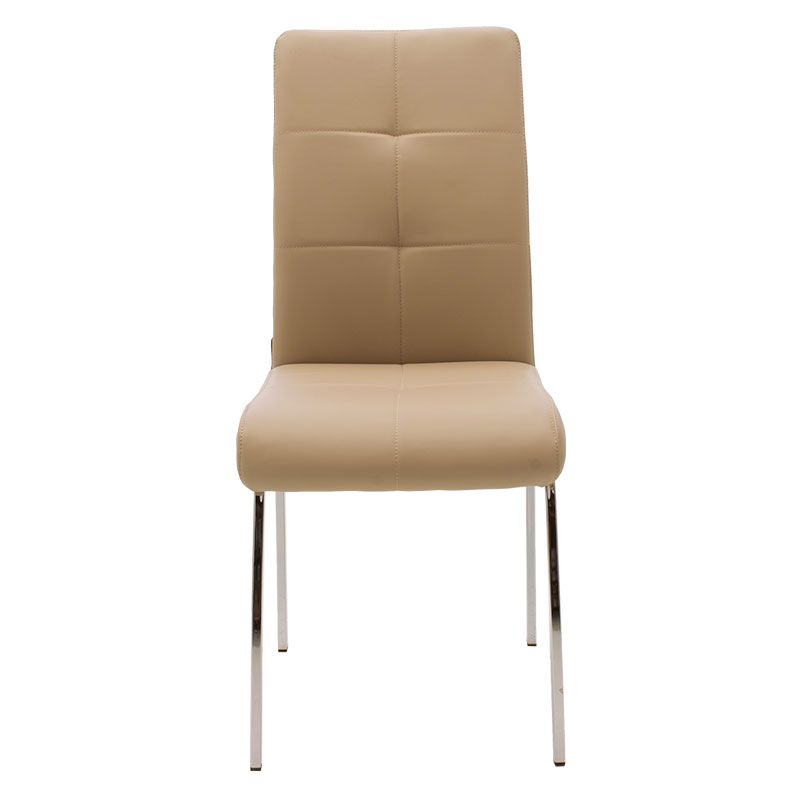 Καρέκλα Ariadne pakoworld PU μόκα-πόδι χρωμίου Καρέκλα Ariadne pakoworld μεταλλική χρωμίου με pu μόκαΨάχνεις ένα κάθισμα με μοντέρνο σχεδιασμό που να συνδυάσει αρμονικά το πρωτοποριακό design με τα ανθεκτικά υλικά της εποχής σου; Αν ναι, τότε η καρέκλα Ariadne είναι η επιλογή σου.Ένα σύγχρονο κάθισμα που θα ανανεώσει αισθητά την διακόσμηση του χώρου σου. Τεχνικά χαρακτηριστικά: *Πλάτη και έδρα κατασκευασμένες από ενισχυμένο σκελετό και επενδυμένες με τεχνόδερμα υψηλών αντοχών. Παρέχει ανθεκτικότητα και εύκολη δυνατότητα καθαρισμού, προσφέρεται σε μόκα χρώμα. *Ο σχεδιασμός της πλάτης ακολουθεί την σπονδυλική στήλη, στηρίζοντας τη μέση με τη μοντέρνα ελαφρώς καμπύλη μορφή της. *Στήριξη σε μεταλλικό επιχρωμιωμένο σκελετό που καταλήγει σε 4 ενισχυμένα πόδια, εξαιρετικής ποιότητας και αντοχής, τόσο στο βάρος όσο και στο χρόνο. *Οι καταλήξεις των ποδιών διαθέτουν προστατευτικά πλαστικά καλύμματα για την προστασία του πατώματος από ανεπιθύμητες φθορές.Διάσταση προϊόντος Μήκος: 43εκ.Πλάτος: 63εκ.Ύψος: 96εκ.Ύψος έδρας: 47εκΠαρατηρήσεις:Το προϊόν παραδίδεται αμοντάριστο, σε εργοστασιακή συσκευασία και με αναλυτικό οδηγό συναρμολόγησης.Η χρωματική απόχρωση του προϊόντος ενδέχεται να διαφέρει ελαφρώς σε σχέση με την φωτογραφική απεικόνισή του.