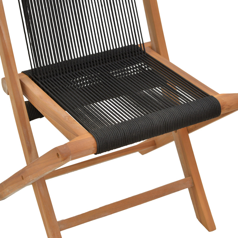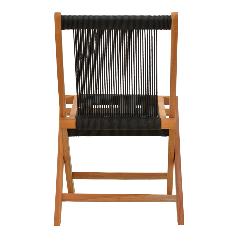 Καρέκλα Banou pakoworld πτυσσόμενη teak ξύλο και pe σχοινί σε μαύρη απόχρωση 52.5x56x89εκ Για εσάς που ψάχνετε μια καρέκλα κήπου που να εντυπωσιάζει με την αισθητική και την ποιότητα κατασκευής της, η σειρά Banou είναι η καλύτερη πρόταση αγοράς.Τεχνικά χαρακτηριστικά: Σκελετός κατασκευασμένος από εξαιρετικής ποιότητας teak ξύλο που προσφέρει αντοχή στον χρόνο και την φθορά. Έδρα και πλάτη επενδυμένες από πολυεστερικό σχοινί υψηλής ανθεκτικότητας. Αναδιπλώνει και κλείνει με μία κίνηση προσφέροντας ευκολία στη μεταφορά και την αποθήκευση. Προσφέρεται σε μαύρο χρώμα.Διαστάσεις προϊόντος: Μήκος: 52.5 εκ. Πλάτος: 56 εκ. Ύψος: 89 εκ. Μήκος καθίσματος: 40 εκ Πλάτος καθίσματος: 34 εκ Υψος καθίσματος: 45 εκ Μήκος πλάτης: 47 εκ Υψος πλάτης: 48 εκΠληροφορίες υλικών: Τeak ξύλο: Είναι ένα είδος ξύλου που προέρχεται από το δέντρο Tectona grandis. Είναι γνωστό για την υψηλή του αντοχή και ανθεκτικότητα στη διάβρωση και την υγρασία. Έχει εξαιρετική αντίσταση στις καιρικές συνθήκες και αντοχή στην υγρασία, κάνοντάς το ιδανικό για εξωτερικές εφαρμογές. Επιπλέον, έχει φυσικά χαρακτηριστικά νερά και χρώματα που το καθιστούν πολύ ελκυστικό. Η χρωματική του απόχρωση μπορεί να ποικίλει από χρυσαφί έως καφέ με γκρι τόνους. Συνθετικό σχοινί: Το συνθετικό σχοινί είναι ένα είδος σχοινιού που κατασκευάζεται από ανθρωπογενείς ίνες, αντί για φυσικές ίνες όπως το βαμβάκι ή το μαλλί. Οι πιο κοινές συνθετικές ίνες που χρησιμοποιούνται στα συνθετικά σχοινιά είναι το νάιλον, ο πολυεστέρας και το πολυπροπυλένιο.Οδηγίες συντήρησης: Teak ξύλο: Για τον καθαρισμό του teakwood, χρησιμοποιήστε ένα μαλακό πανί ελαφρά εμποτισμένο με νερό και ήπιο σαπούνι. Ξεπλύνετε καλά και στεγνώστε με ένα καθαρό πανί. Συνθετικό σχοινί: Η καθαριότητα και η συντήρηση του σχοινιού εξαρτάται από το υλικό από το οποίο κατασκευάζεται. Γενικά, τα σχοινιά πλένονται με ζεστό νερό και ήπιο απορρυπαντικό. Τα σχοινιά από συνθετικές ίνες είναι ανθεκτικά στην υγρασία και συνήθως δεν απαιτούν ειδική συντήρηση.Παρατηρήσεις: Το προϊόν παραδίδεται αμοντάριστο σε εργοστασιακή συσκευασία. Η χρωματική απόχρωση του προϊόντος ενδέχεται να διαφέρει ελαφρώς σε σχέση με την φωτογραφική απεικόνισή του στην οθόνη σας.
