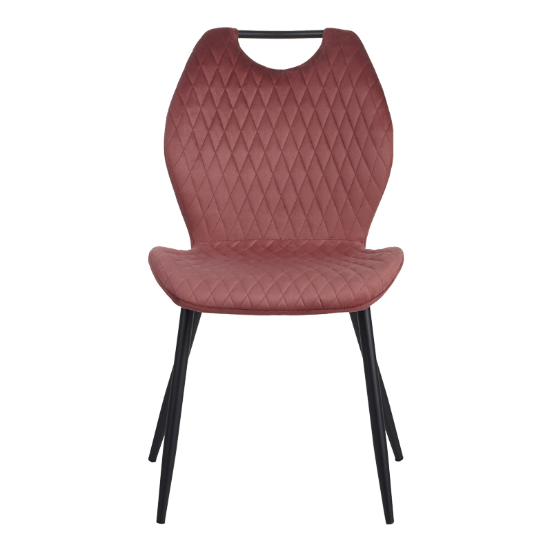 Καρέκλα Bongo pakoworld βελούδο σε σάπιο μήλο απόχρωση με μαύρα μεταλλικά πόδια 56.5x47x84εκ Η καρέκλα Bongo συνδυάζει τον μοντέρνο σχεδιασμό με την άνεση, προσφέροντας μια κομψή και λειτουργική προσθήκη σε κάθε τραπεζαρία. Με το μοναδικό της σχήμα και το καπιτονέ σχέδιο, η καρέκλα αυτή ξεχωρίζει για την αισθητική της και την άνεση που προσφέρει.Τεχνικά χαρακτηριστικά: Σταθερός μεταλλικός σκελετός από εξαιρετικής ποιότητας υλικά με μεγάλη αντοχή και ανθεκτικότητα. Στήριξη σε τέσσερα μαύρα ενισχυμένα πόδια, εξαιρετικής ποιότητας και με αντοχή στο βάρος και στο χρόνο. Επένδυση με βελούδο ασυναγώνιστης ποιότητας με αντοχή στη φθορά και στις τριβές. Προσφέρεται σε σάπιο μήλο χρώμα.Διαστάσεις προϊόντος: Μήκος: 56.5 εκ Πλάτος: 47 εκ Ύψος: 84 εκΠληροφορίες υλικών: Velvet – Βελούδο: Το βελούδο είναι ένα ύφασμα με κοντές, πυκνές ίνες, συνήθως από μετάξι, βαμβάκι ή συνθετικά υλικά. Έχει μια απαλή, λεία υφή και μια πλούσια, γυαλιστερή εμφάνιση. Χαρακτηρίζεται για την πυκνότητα του και την απαλότητά του. Μέταλλο: Το μέταλλο χρησιμοποιείται ευρέως στην κατασκευή επίπλων, προσφέροντας μια σειρά από πλεονεκτήματα σε σχέση με άλλα υλικά. Είναι εξαιρετικά ανθεκτικό σε φθορές, ιδανικό για έπιπλα που προορίζονται για καθημερινή χρήση σε ένα απαιτητικό περιβάλλον. Διατηρεί το σχήμα και τη δομή του άψογα, εξασφαλίζοντας σταθερότητα και μακροζωία στα έπιπλα. Εκτός από τις ιδιότητες που αναφέρθηκαν παραπάνω, το μέταλλο μπορεί να έχει και άλλα χαρακτηριστικά, όπως η αντιμικροβιακή δράση (χαλκός) ή υπεραγωγιμότητα (μολυβδένιο).Συντήρηση υλικών: Βελούδο: Χρησιμοποιείστε μία μαλακή βούρτσα, ή την ηλεκτρική σας σκούπα και το εξάρτημα με την μαλακή τρίχα και με απαλές κινήσεις καθαρίστε το βελούδο. Σε περίπτωση λεκέ σκουπίστε με ένα μαλακό πανί και χλιαρό νερό, αλλά τρίψτε πολύ απαλά το λεκέ χωρίς να ασκείτε πίεση γιατί θα ποτίσει ακόμα πιο βαθιά. Ξεπλύνετε καλά την περιοχή με καθαρό νερό και αφήστε το ύφασμα να στεγνώσει μακριά από τον ήλιο. Μέταλλο: Εάν πρόκειται για οποιοδήποτε μέταλλο εσωτερικού χώρου, ένα ξεσκόνισμα ή ένα καθάρισμα με υγρό πανί σε τακτά χρονικά διαστήματα είναι η ενδεδειγμένη επιλογή.Παρατηρήσεις: Το προϊόν παραδίδεται αμοντάριστο, σε εργοστασιακή συσκευασία και με αναλυτικό οδηγό συναρμολόγησης. Η χρωματική απόχρωση του προϊόντος ενδέχεται να διαφέρει ελαφρώς σε σχέση με την φωτογραφική απεικόνισή του στην οθόνη σας.