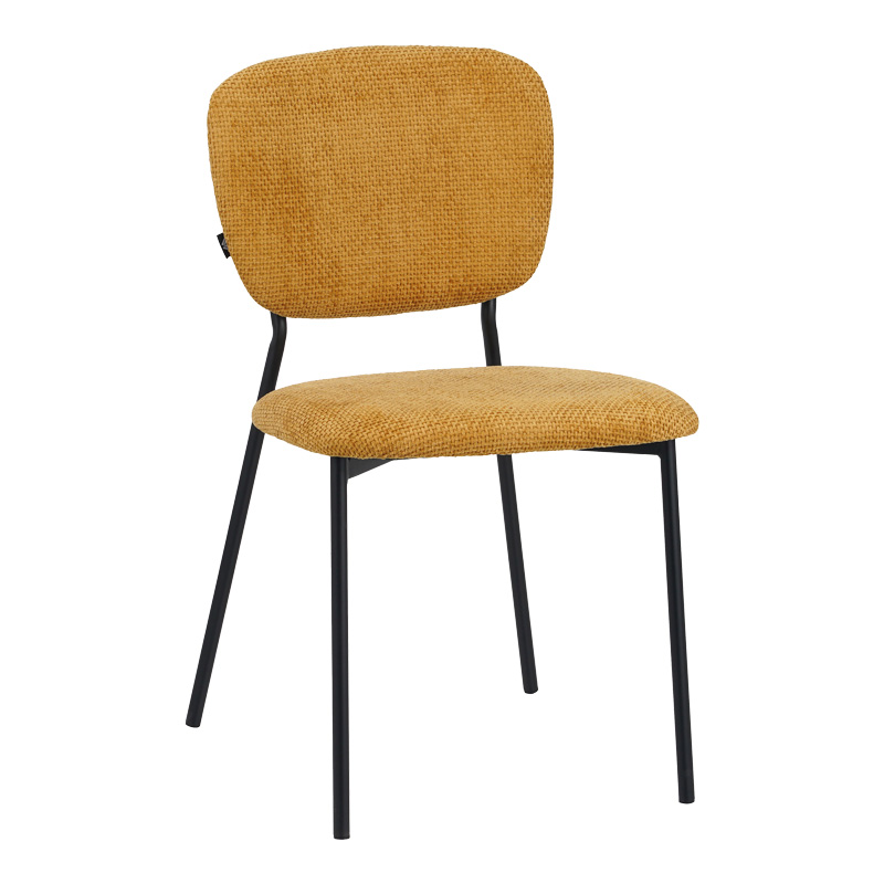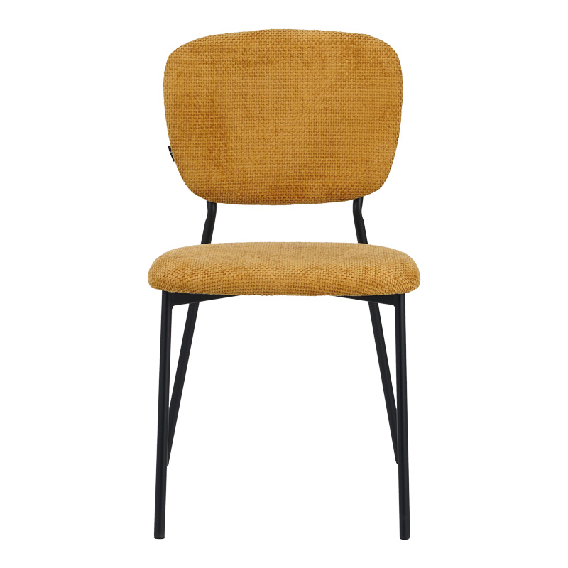 Καρέκλα Cathair pakoworld μπουκλέ ύφασμα σε κίτρινη απόχρωση με μαύρα μεταλλικά πόδια 48x53x82εκ