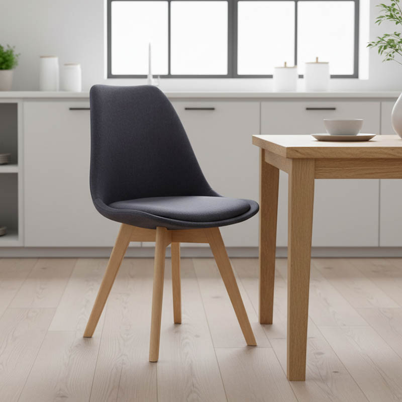 Καρέκλα Gaston pakoworld γκρι σκούρο ύφασμα και ξύλινο πόδι σε φυσική απόχρωση 48x55x83εκ