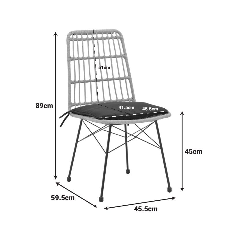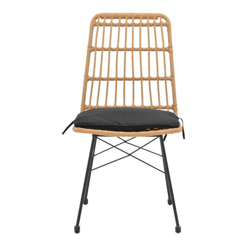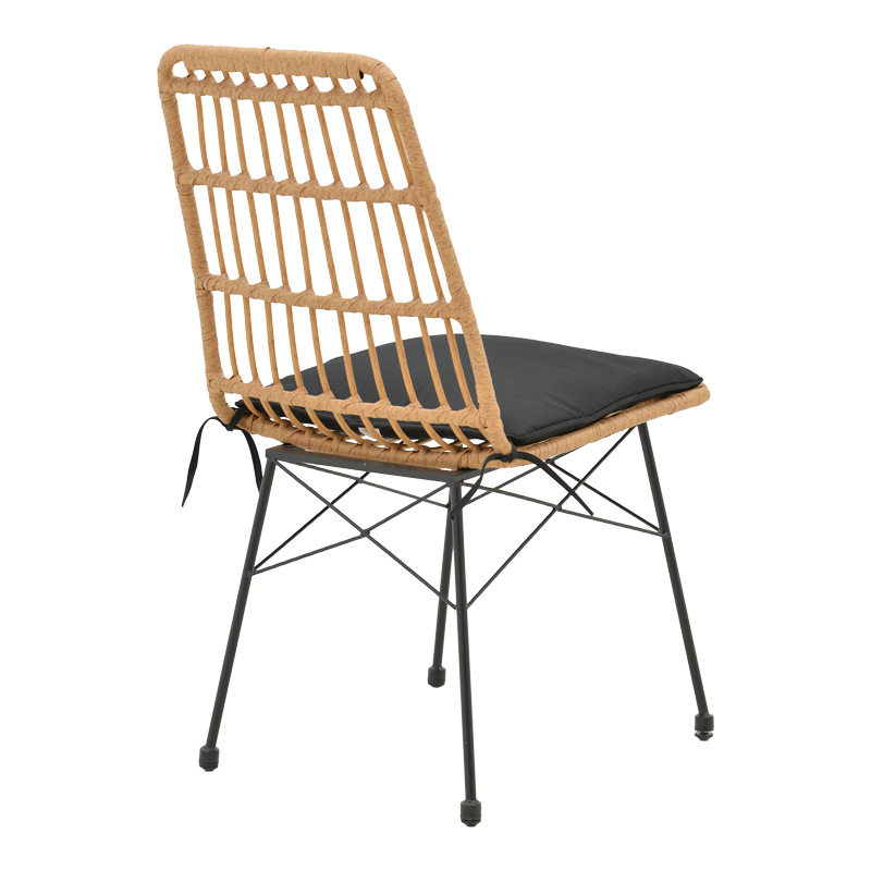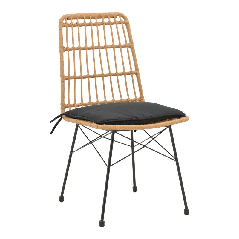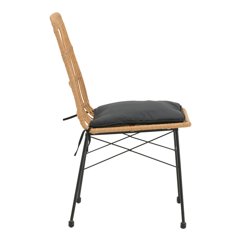 Καρέκλα Naoki pakoworld rattan σε φυσική απόχρωση με μαύρο μαξιλάρι και μεταλλικό μαύρο πόδι 45.5×59.5×89εκ Η καρέκλα Naoki αποτελεί ένα ευχάριστο και λειτουργικό έπιπλο που ενσωματώνεται αρμονικά στον εξωτερικό σας χώρο. Συνδυάζει την άνεση και το στυλ για να προσφέρει μια ευχάριστη εμπειρία χαλάρωσης υπαίθρια.Τεχνικά χαρακτηριστικά: Σταθερός σκελετός από εξαιρετικής ποιότητας μέταλλο με αντοχή στην καταπόνηση και στη φθορά. Κυρίως επιφάνεια πολυθρόνας από PE rattan. Το PE rattan είναι ένα είδος οικολογικού συνθετικού rattan, ανακυκλώσιμο και με μεγαλύτερη ανθεκτικότητα σε σχέση με τα άλλα είδη. Φέρει υφασμάτινο μαξιλαράκι για την έδρα του καθίσματος. Μεγάλη ανθεκτικότητα: κατάλληλο για χρήση σε εξωτερικό χώρο εκτεθειμένο στις καιρικές συνθήκες και την υγρασία. Προσφέρεται σε χρώμα: φυσικό-μαύροΔιάσταση προϊόντος: Μήκος: 45.5 εκ. Πλάτος: 59.5 εκ. Ύψος: 89 εκ. Βάθος έδρας: 41.5 εκ. Ύψος έδρας: 45 εκ. Ύψος πλάτης: 51 εκ.Πληροφορίες υλικών: PE Rattan: Είναι ένα δημοφιλές υλικό, απομίμηση φυσικού rattan, που χρησιμοποιείται στην κατασκευή επίπλων και αξεσουάρ. Κατασκευάζεται από πολυαιθυλένιο (polyethylene), το οποίο είναι μια ανθεκτική συνθετική πολυμερής ρητίνη. Είναι ανθεκτικό στις καιρικές συνθήκες, δεν φθείρεται από τον ήλιο ή τη βροχή και δεν ξεθωριάζει, ενώ παράλληλα είναι φιλικό προς το περιβάλλον. Μέταλλο: Το μέταλλο χρησιμοποιείται ευρέως στην κατασκευή επίπλων, προσφέροντας μια σειρά από πλεονεκτήματα σε σχέση με άλλα υλικά. Είναι εξαιρετικά ανθεκτικό σε φθορές, ιδανικό για έπιπλα που προορίζονται για καθημερινή χρήση σε ένα απαιτητικό περιβάλλον. Διατηρεί το σχήμα και τη δομή του άψογα, εξασφαλίζοντας σταθερότητα και μακροζωία στα έπιπλα. Εκτός από τις ιδιότητες που αναφέρθηκαν παραπάνω, το μέταλλο μπορεί να έχει και άλλα χαρακτηριστικά, όπως η αντιμικροβιακή δράση (χαλκός) ή υπεραγωγιμότητα (μολυβδένιο). Ύφασμα μαξιλαριού: Το ύφασμα είναι ένα ευέλικτο υλικό που κατασκευάζεται από την ύφανση, πλέξιμο, βελονιά ή συγκόλληση ινών. Αυτές οι ίνες μπορεί να είναι φυσικές, όπως βαμβάκι, μαλλί ή μετάξι, ή συνθετικές, όπως πολυεστέρας ή νάιλον. Η ύφανση των ινών δημιουργεί ένα δίκτυο που δίνει στο ύφασμα τις ιδιότητές του, όπως η αντοχή, η απαλότητα, η διαπνοή και η ελαστικότητα. Υπάρχουν άπειρες ποικιλίες υφασμάτων, καθεμιά με τα δικά της μοναδικά χαρακτηριστικά και χρήσεις.Οδηγίες συντήρησης: PE Rattan: Είναι εύκολο στη συντήρηση και τον καθαρισμό, απαιτεί απλό πλύσιμο με νερό και σαπούνι. Μέταλλο: Εάν πρόκειται για οποιοδήποτε μέταλλο εσωτερικού χώρου, ένα ξεσκόνισμα ή ένα καθάρισμα με υγρό πανί σε τακτά χρονικά διαστήματα είναι η ενδεδειγμένη επιλογή. Ωστόσο, εάν πρόκειται για μεταλλικά έπιπλα εξωτερικού χώρου, θα πρέπει να ακολουθήσετε τα παρακάτω βήματα: Για μεγαλύτερη διάρκεια προστασίας, περάστε τα μεταλλικά σας έπιπλα με προστατευτική κρέμα που μπορείτε να προμηθευτείτε εύκολα από εμπορικά καταστήματα. Εάν τα έπιπλά σας είναι επεξεργασμένα και βαμμένα με την μέθοδο του powder-coating (ηλεκτροστατική βαφή) τότε είναι πολύ ανθεκτικά και καθαρίζονται εύκολα με ένα υγρό πανί. Εάν τα μεταλλικά σας έπιπλα δεν έχουν ηλεκτροστατική βαφή, τότε θα πρέπει να τα προσέχετε περισσότερο και να τα κρατάτε μακριά από νερά και υγρασία. Μπορείτε να τα καλύψετε με ειδικά καλύμματα και τον χειμώνα να τα βάζετε εάν μπορείτε σε εσωτερικό χώρο. Εάν παρατηρήσετε σκουριά, τότε αφαιρέστε την με νέφτι κα