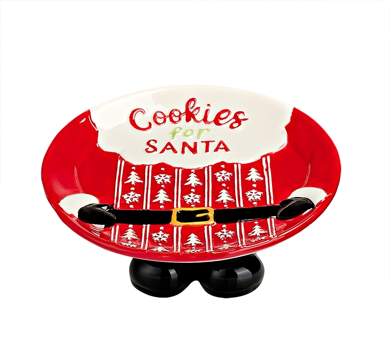 ΚΕΡΑΜΙΚΗ ΧΡΙΣΤΟΥΓΕΝΝΙΑΤΙΚΗ ΠΙΑΤΕΛΑ ΜΕ ΠΟΔΙΑ ΑΪ ΒΑΣΙΛΗ ”COOKIES FOR SANTA” Φ25x10cm