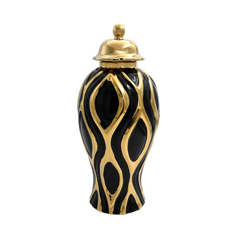 ΚΕΡΑΜΙΚΟ ΒΑΖΟ Fylliana FL22212 ΜΑΥΡΟ-ΧΡΥΣΟ ΧΡΩΜΑ 18×33εκ